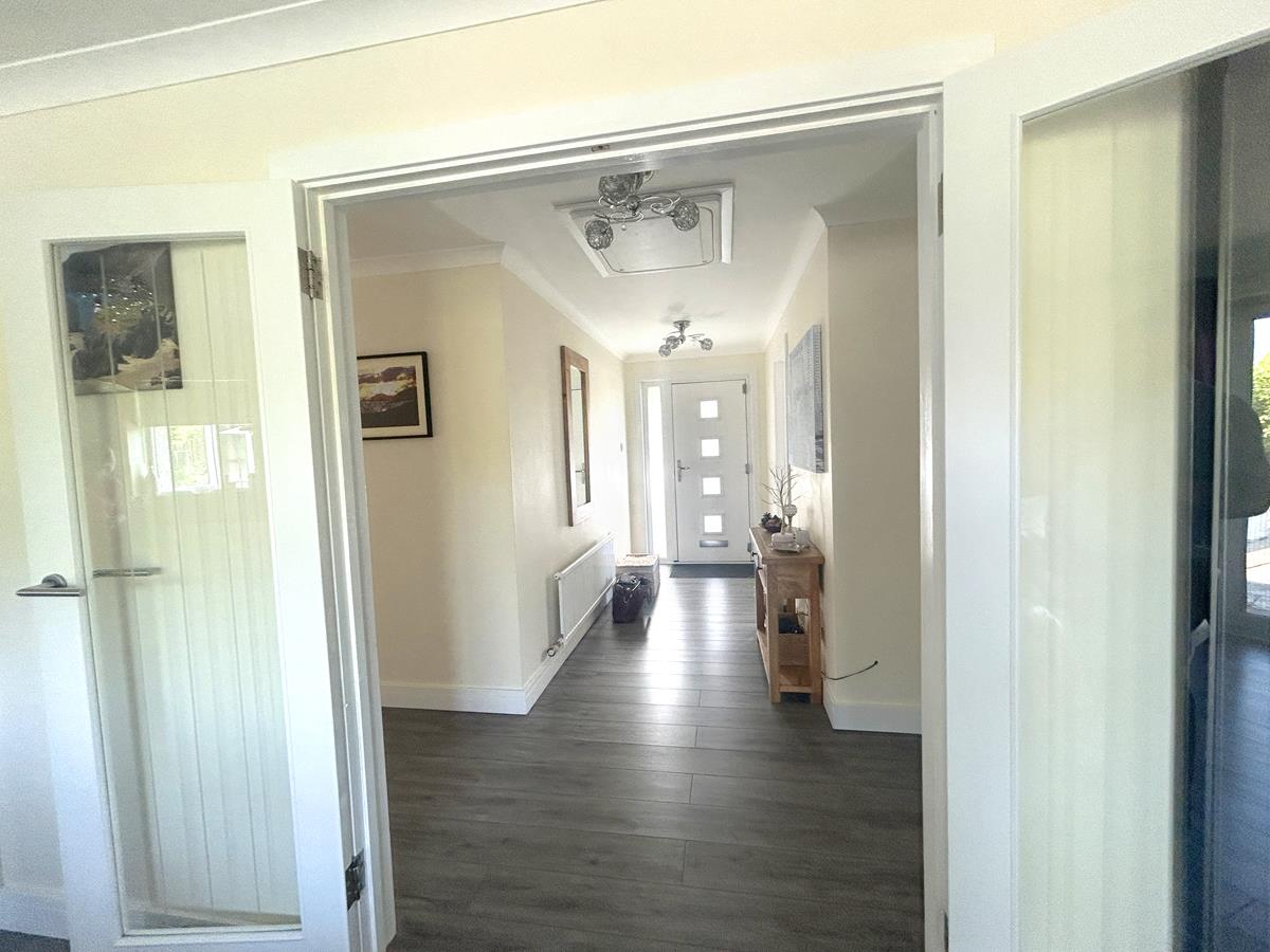 Hallway - Of generous proportions, a lovely welcome to this super home with wood effect flooring and storage cupboard with slatted shelving.