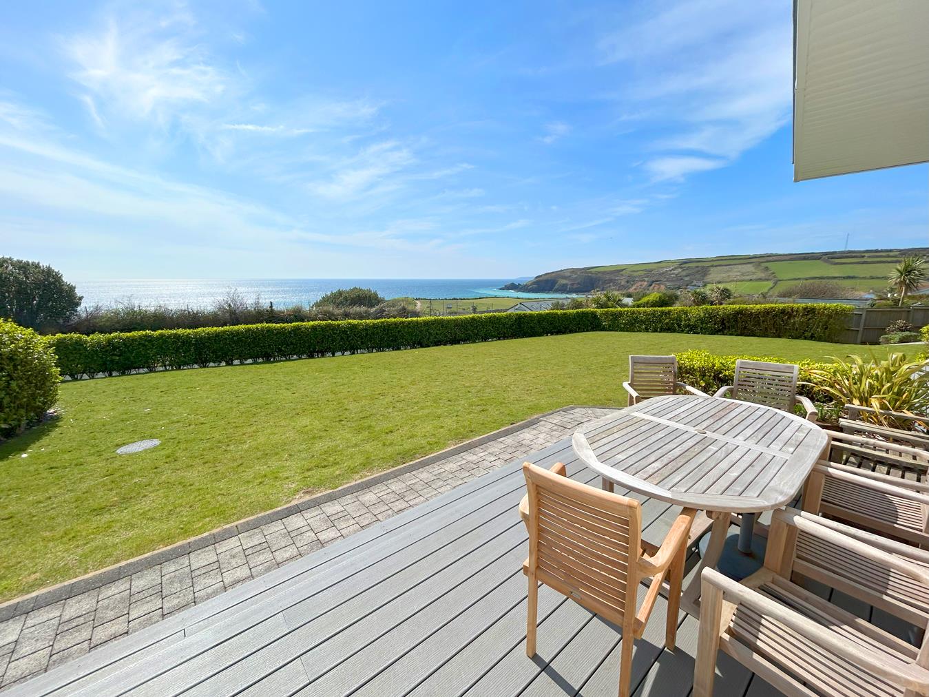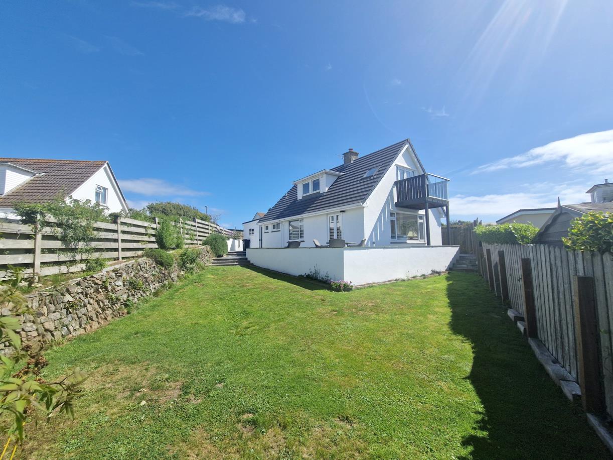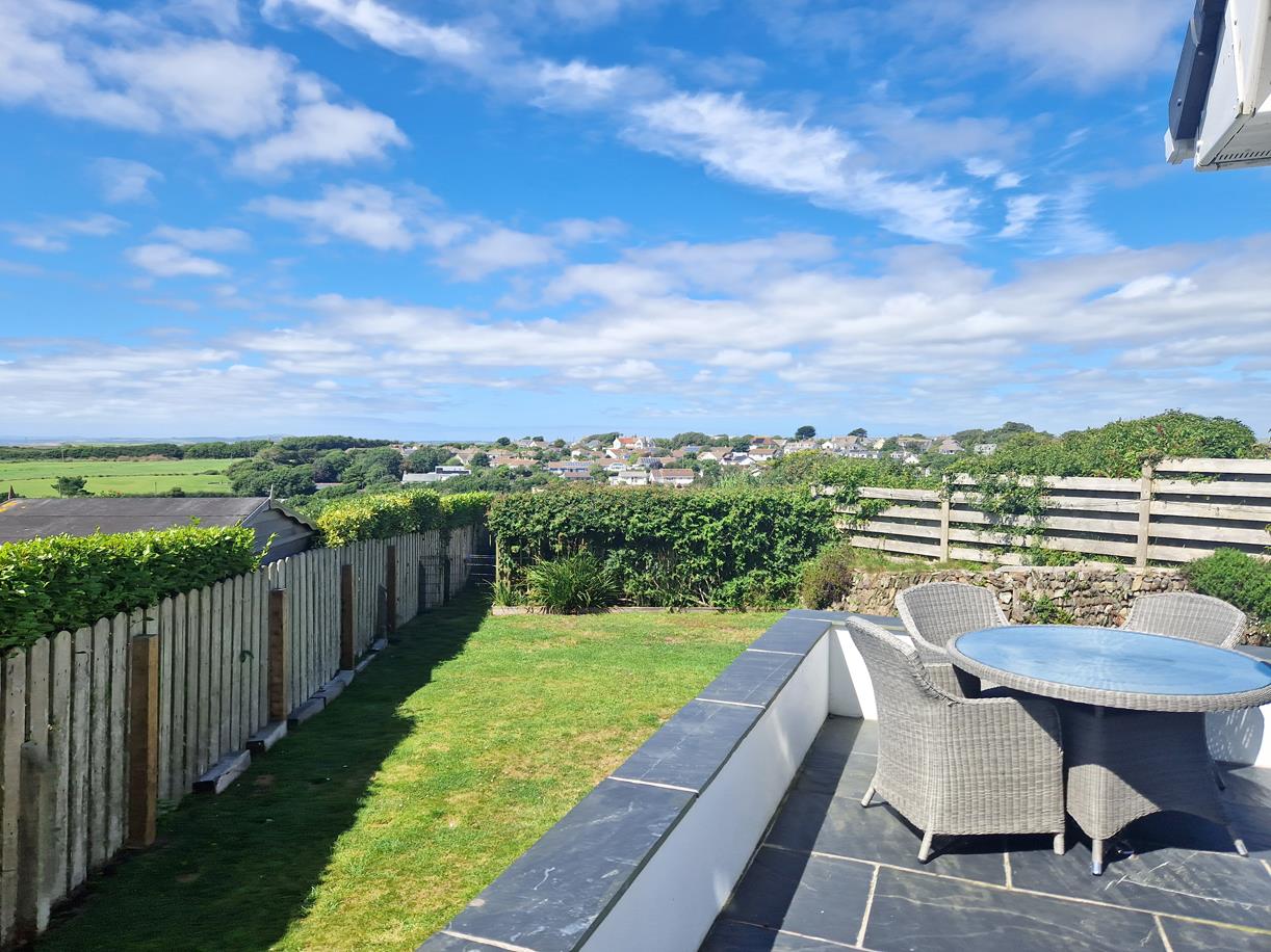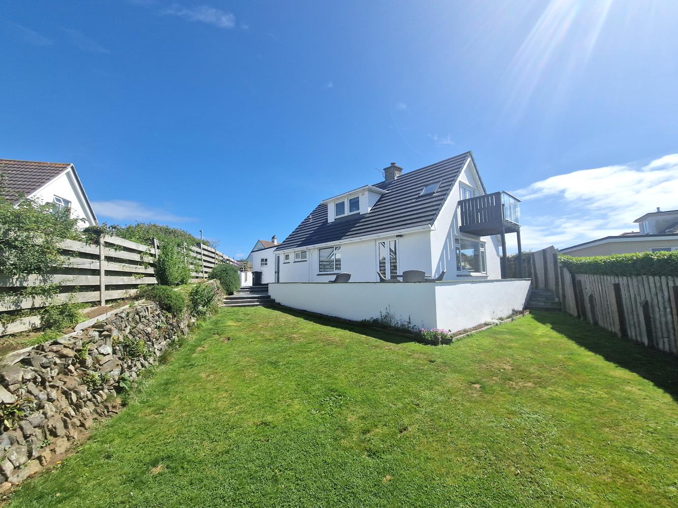 Outside - The outside space provides many vantage points to enjoy the views across open countryside and out to sea. There are good sized lawned areas and hard landscaped patio areas with the front terrace being a particular highlight. At the bottom of the garden is a further area which is currently used as a compost area whilst to the front of the residence is a parking area for at least two vehicles.