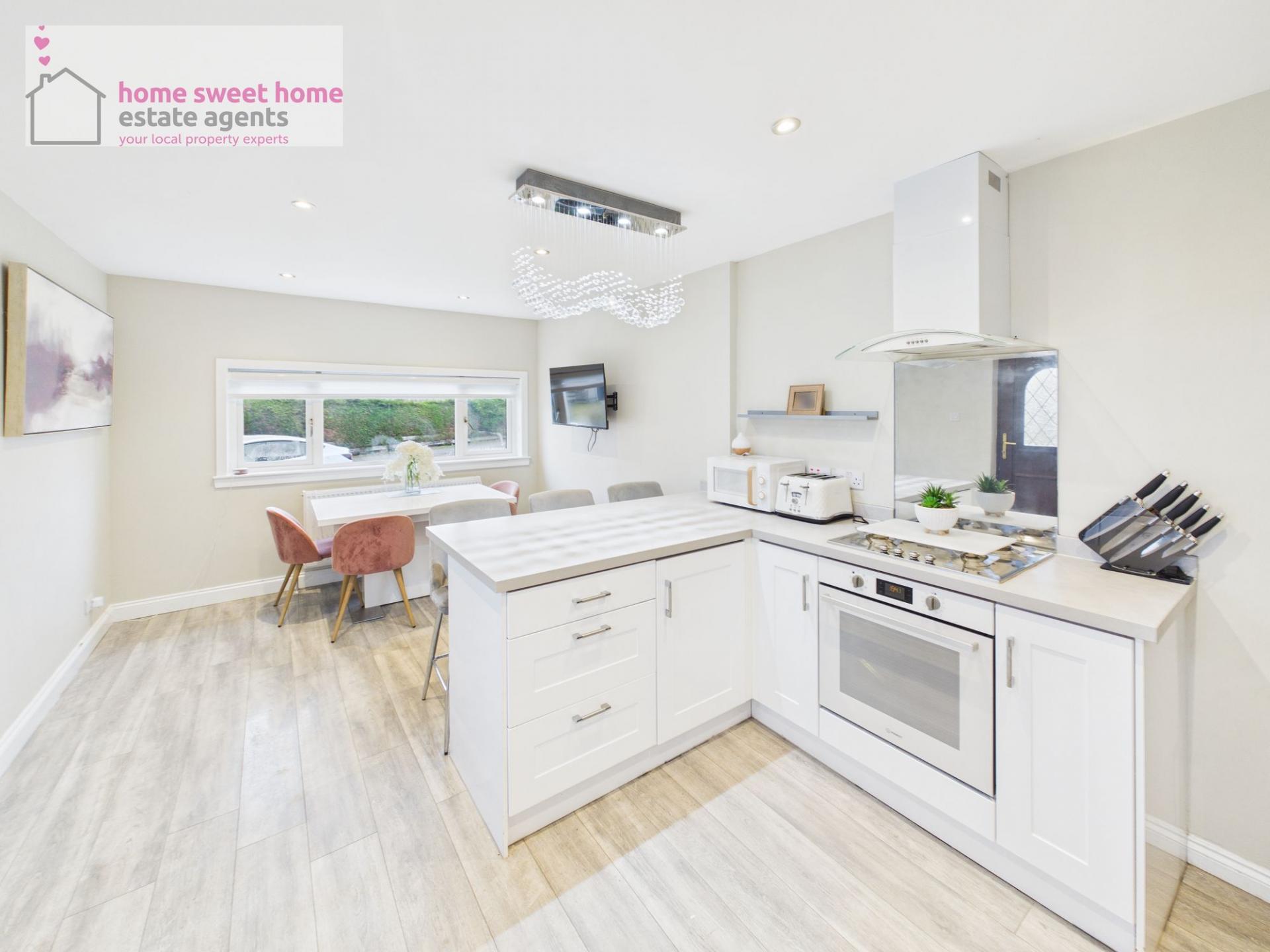 - Stylish modern kitchen-diner with integrated appliances and dining space