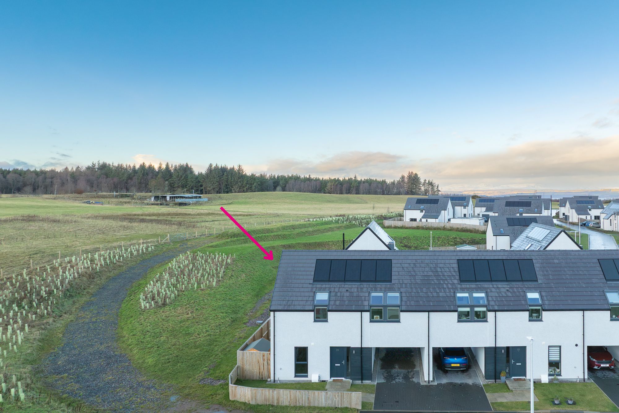 Modern 3-bed home in quiet Croy setting with open-plan living, integrated kitchen, gardens, driveway, and covered parkin...