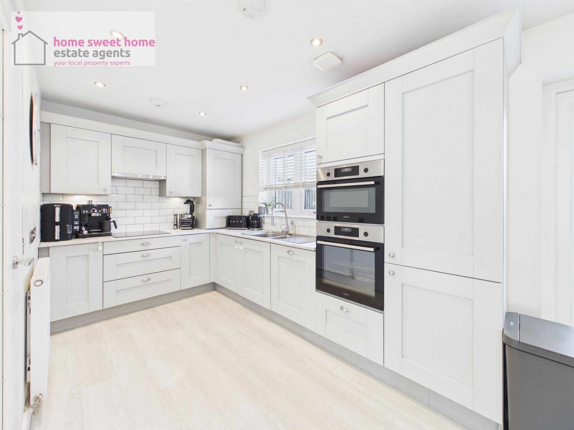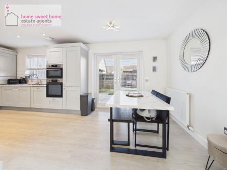 - Kitchen with integrated hob, oven, microwave, dishwasher, and fridge-freezer