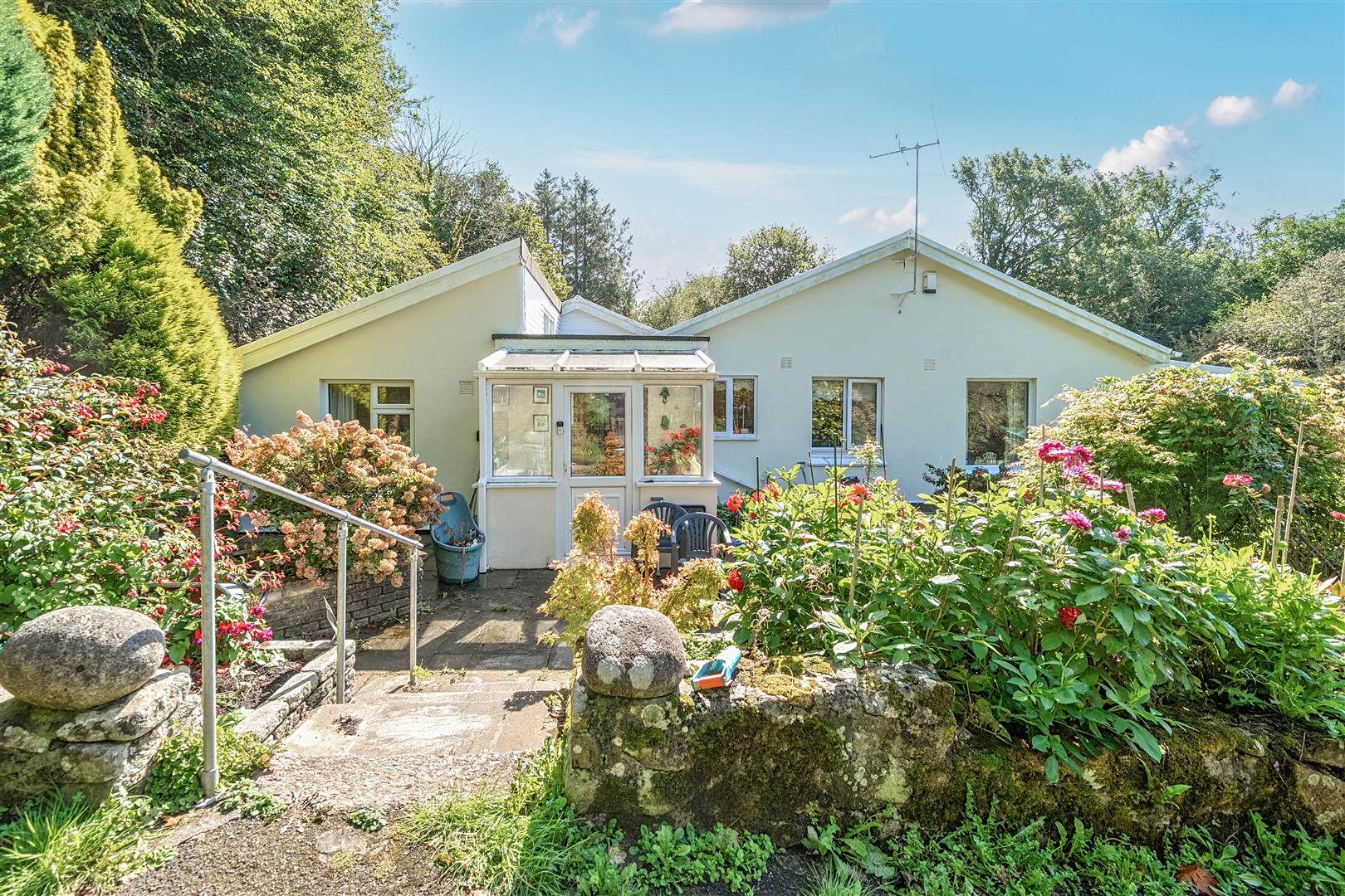 Outside - There is no doubt that the gardens and land are wonderful selling points for the property, and opportunities like this are becoming far & few between. The gardens surrounding the bungalow are spacious and comprise level lawn areas, patio, growing beds, greenhouses and garden sheds. The lawns extend down to the river and are planted with mature trees and shrubs. The wooded area extends to the property boundary, which also features the ruins of an old stamp which is the property's namesake. Long private drive leads to a generous parking area in front of the garage and workshop. From here, gated access leads up to the paddocks that are included with the property. The land is arranged over 6 paddocks with clear defined boundaries. From the top paddock, there are wonderful views to St Michaels Mount.