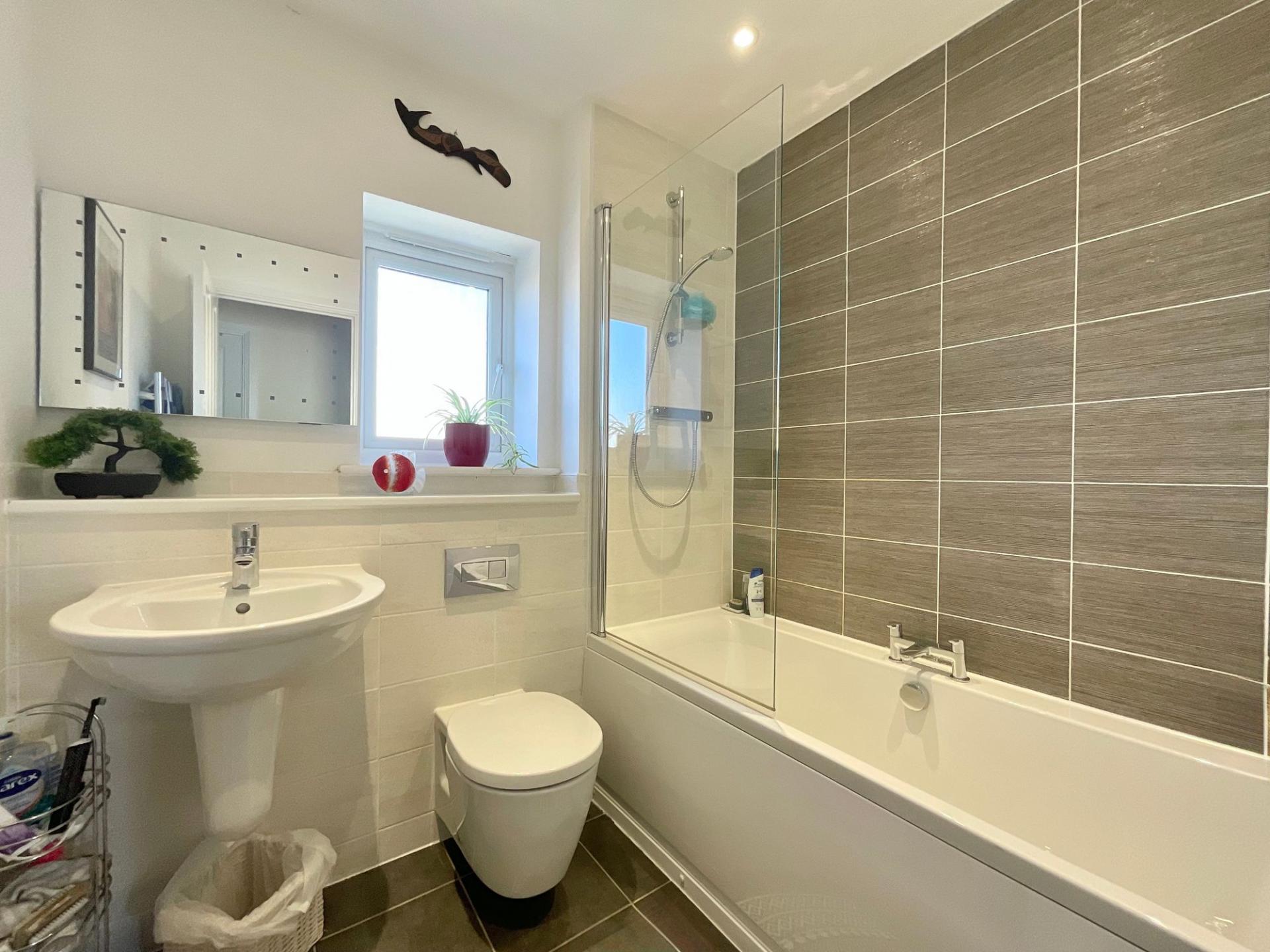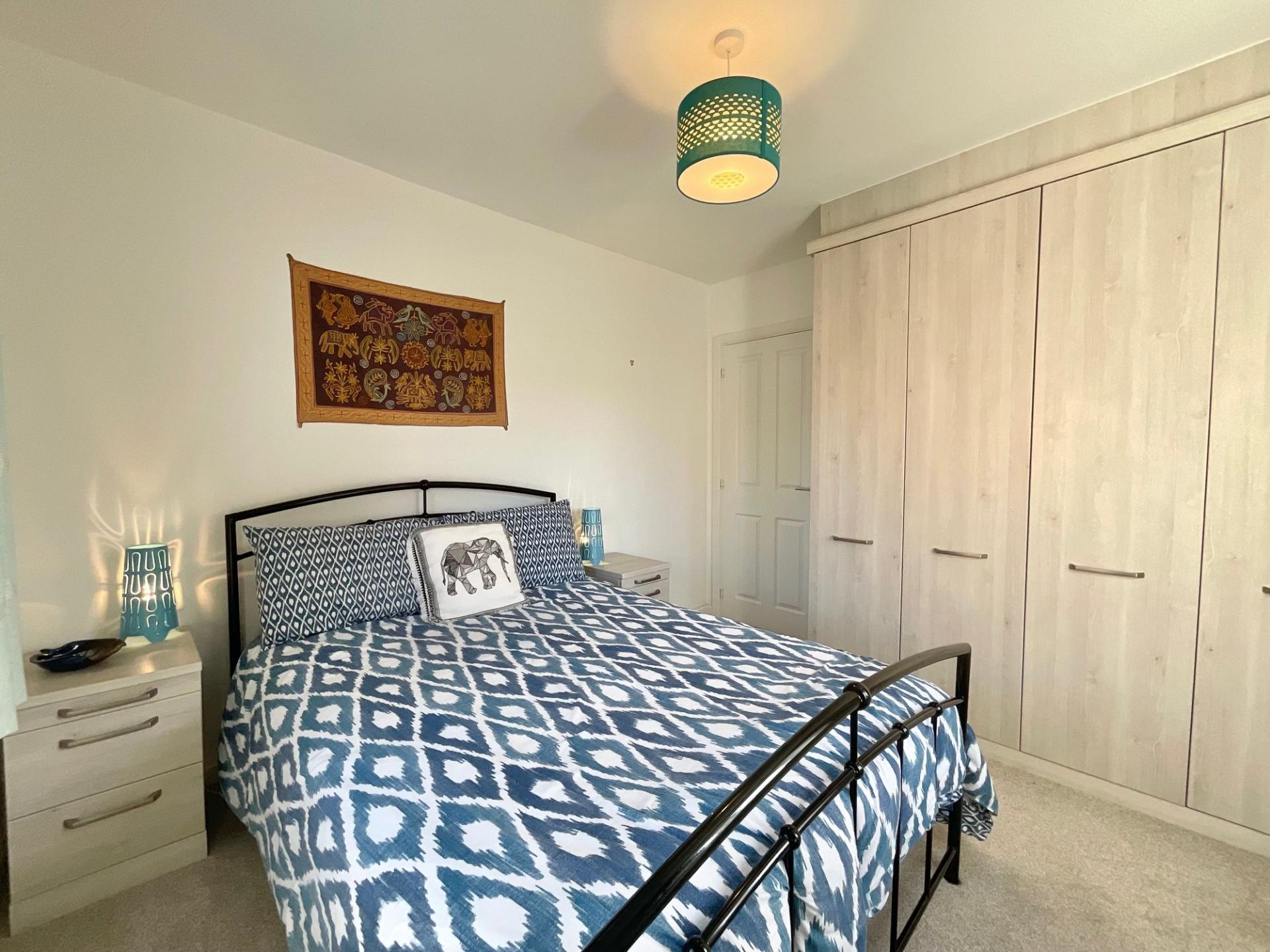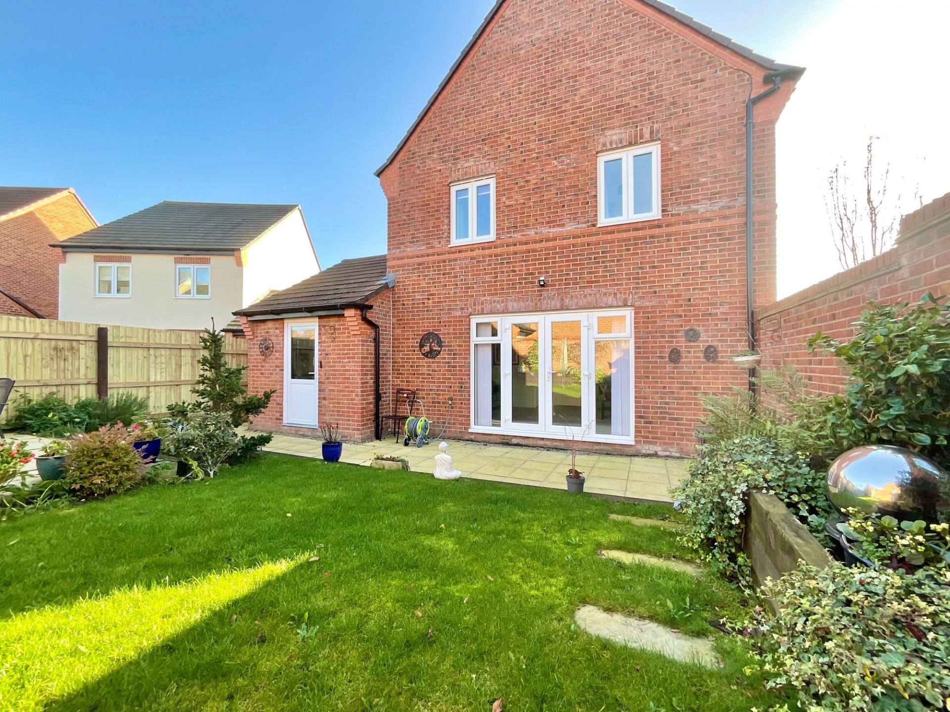 - Charming rear garden with a patio, lawn, and well-kept flower beds.