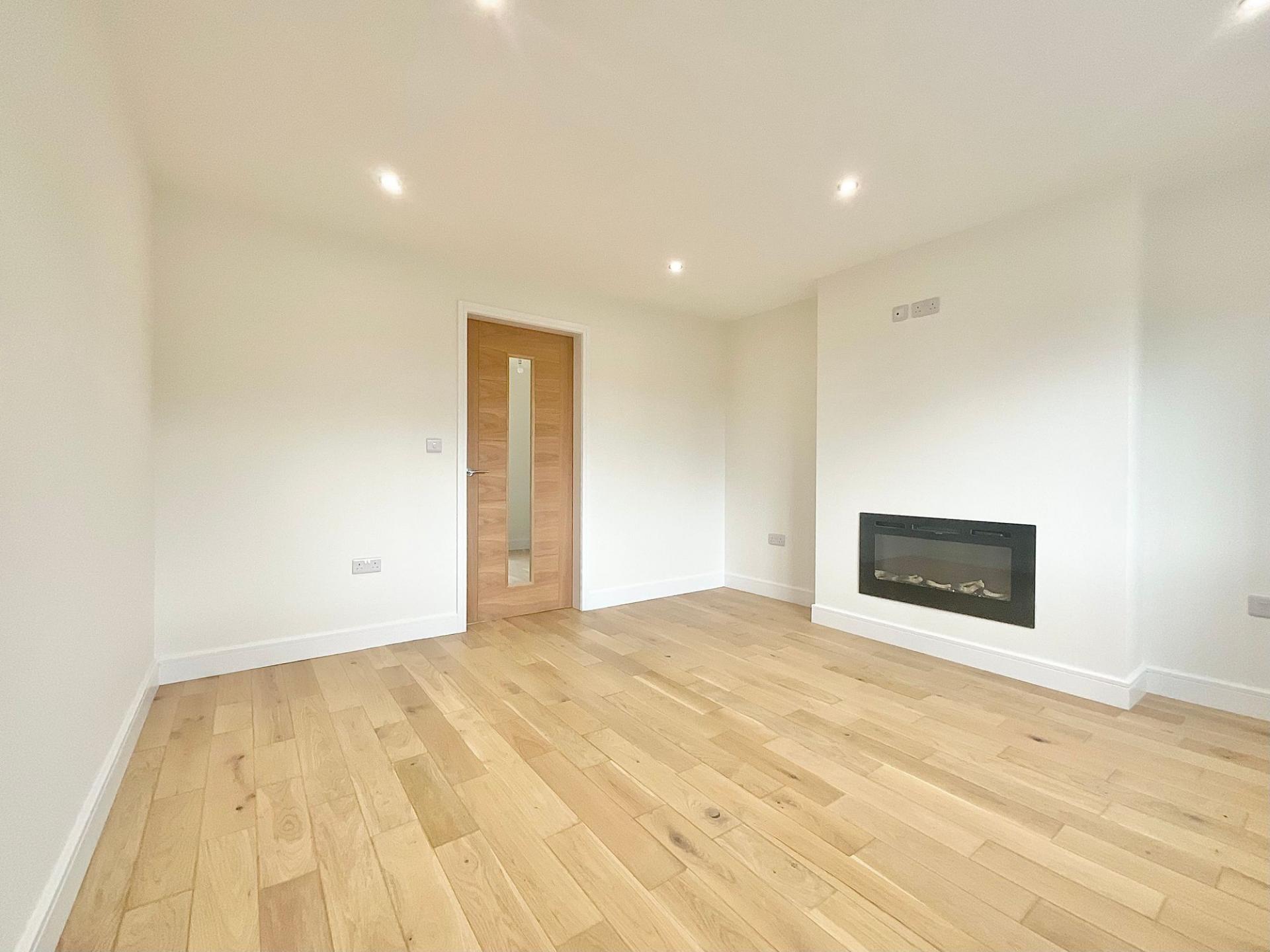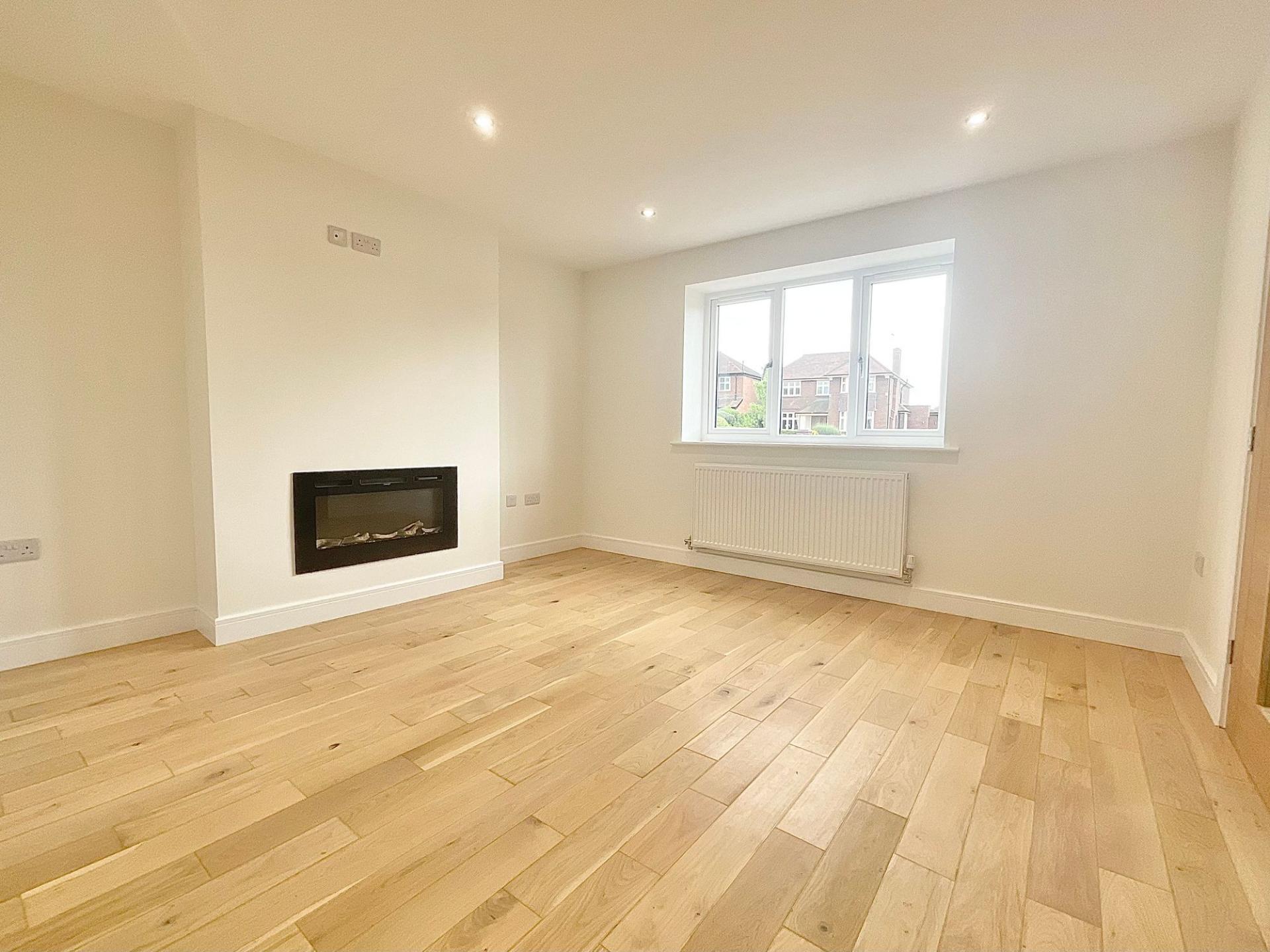 - Bright living room – Large front window and stylish electric fire for a contemporary feel.