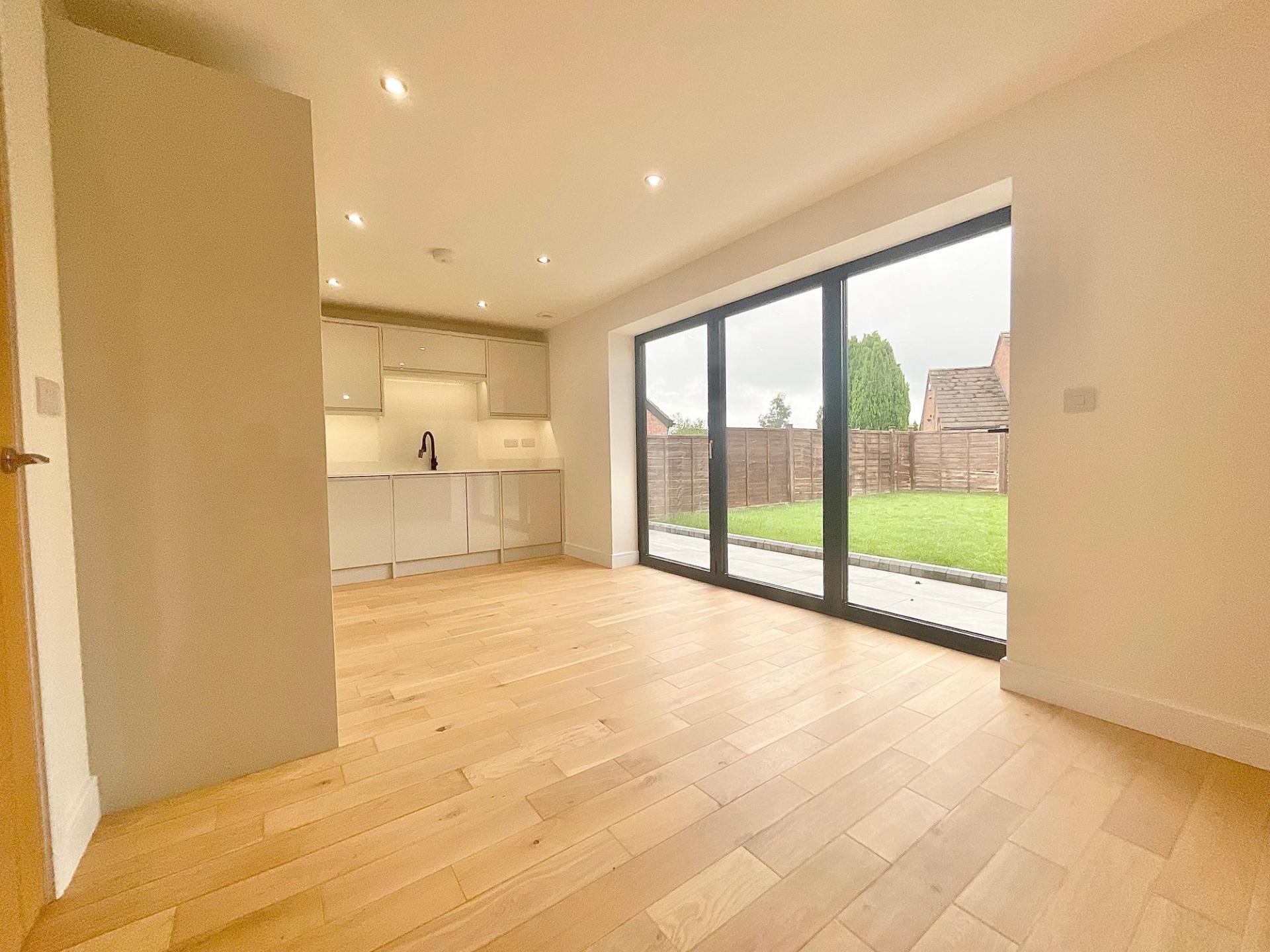 - Modern kitchen/diner – Sleek units with integrated appliances and bi-folding doors to the garden.