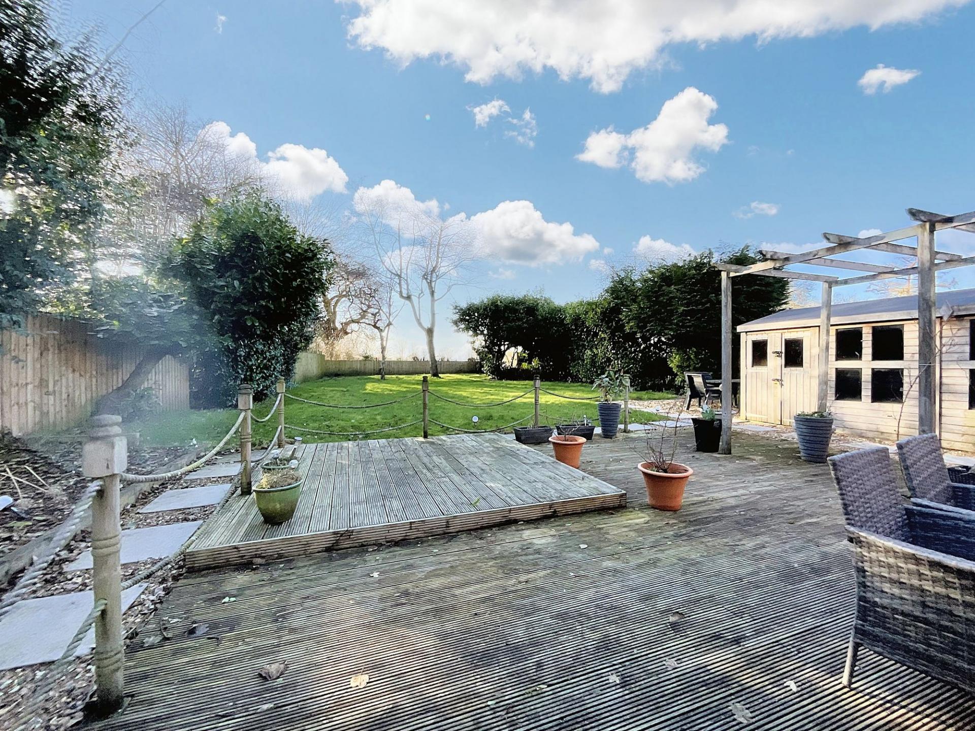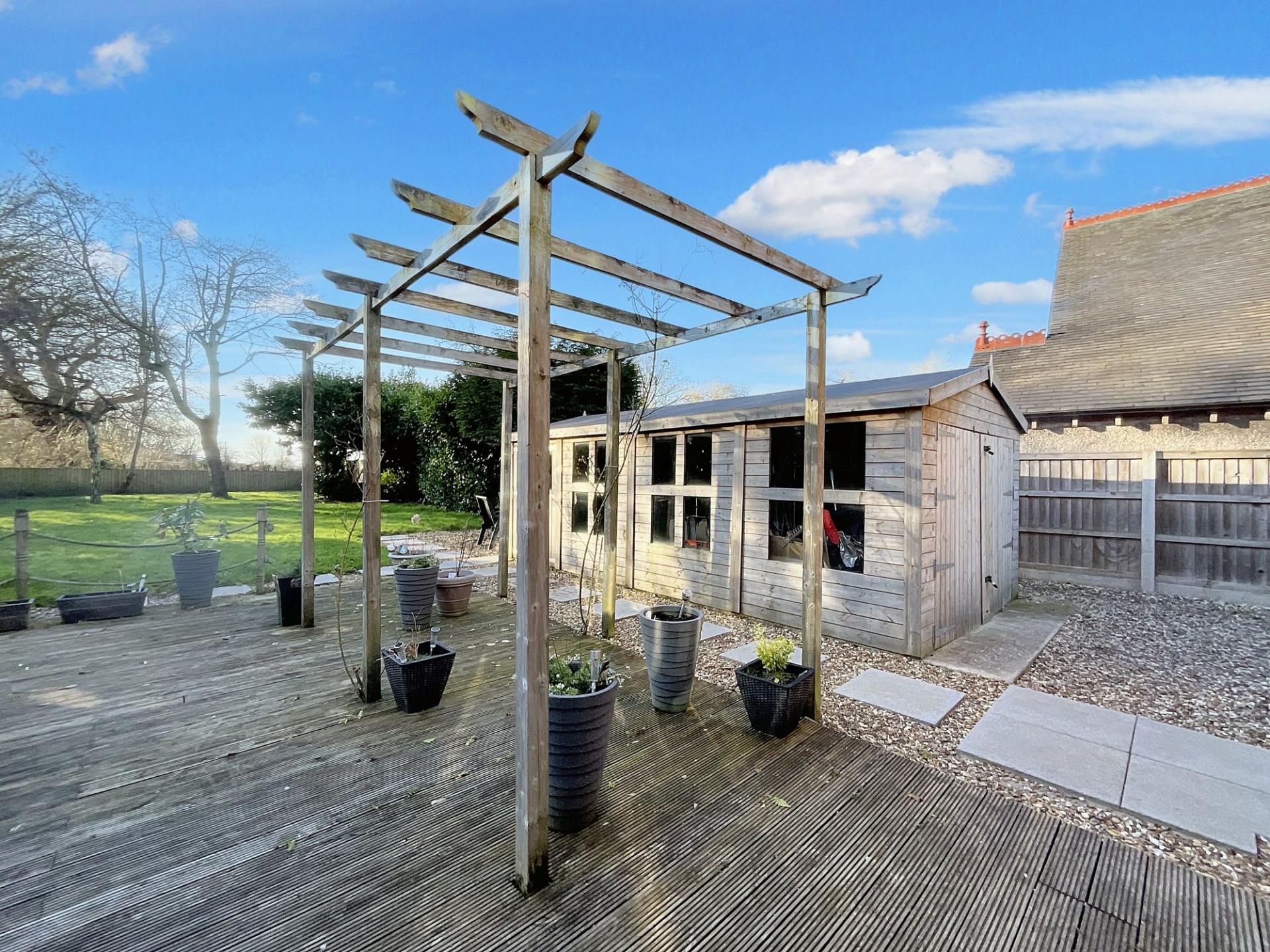- Externally there are large front and rear gardens, the rear of which has scenic views over open fields, driveway parking for seven cars and wooden outbuilding.