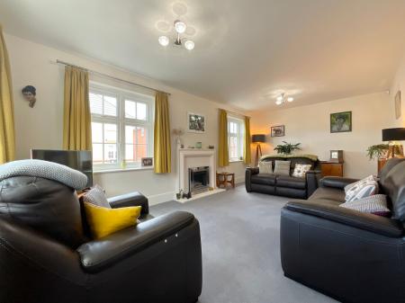 - Large dual-aspect living room featuring a fireplace and plenty of natural light.