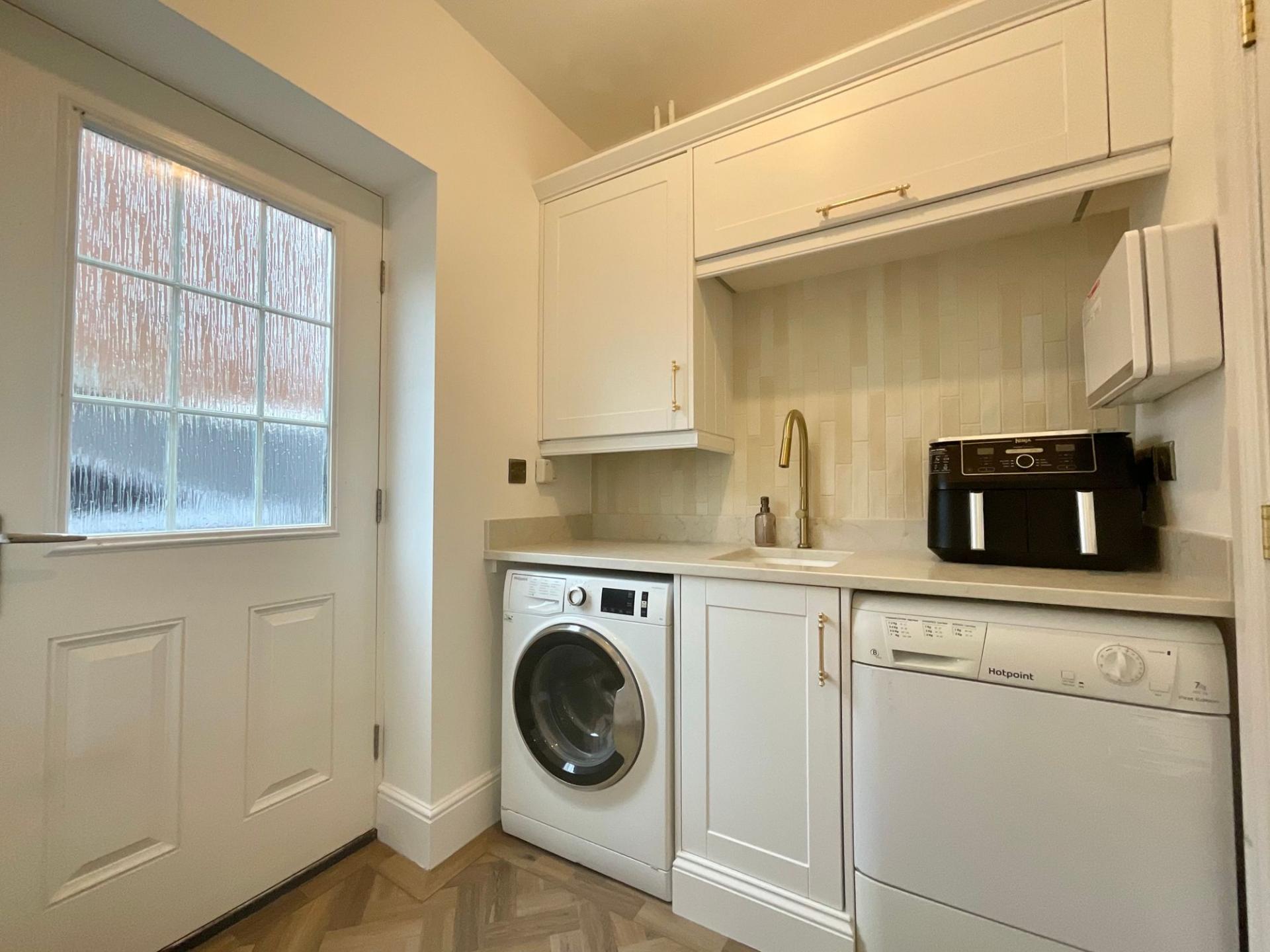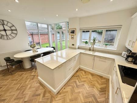 - Sleek, modern kitchen/diner with quartz worktops throughout, floor-to-ceiling windows, integrated appliances, under-stairs storage and French doors for al fresco dining.