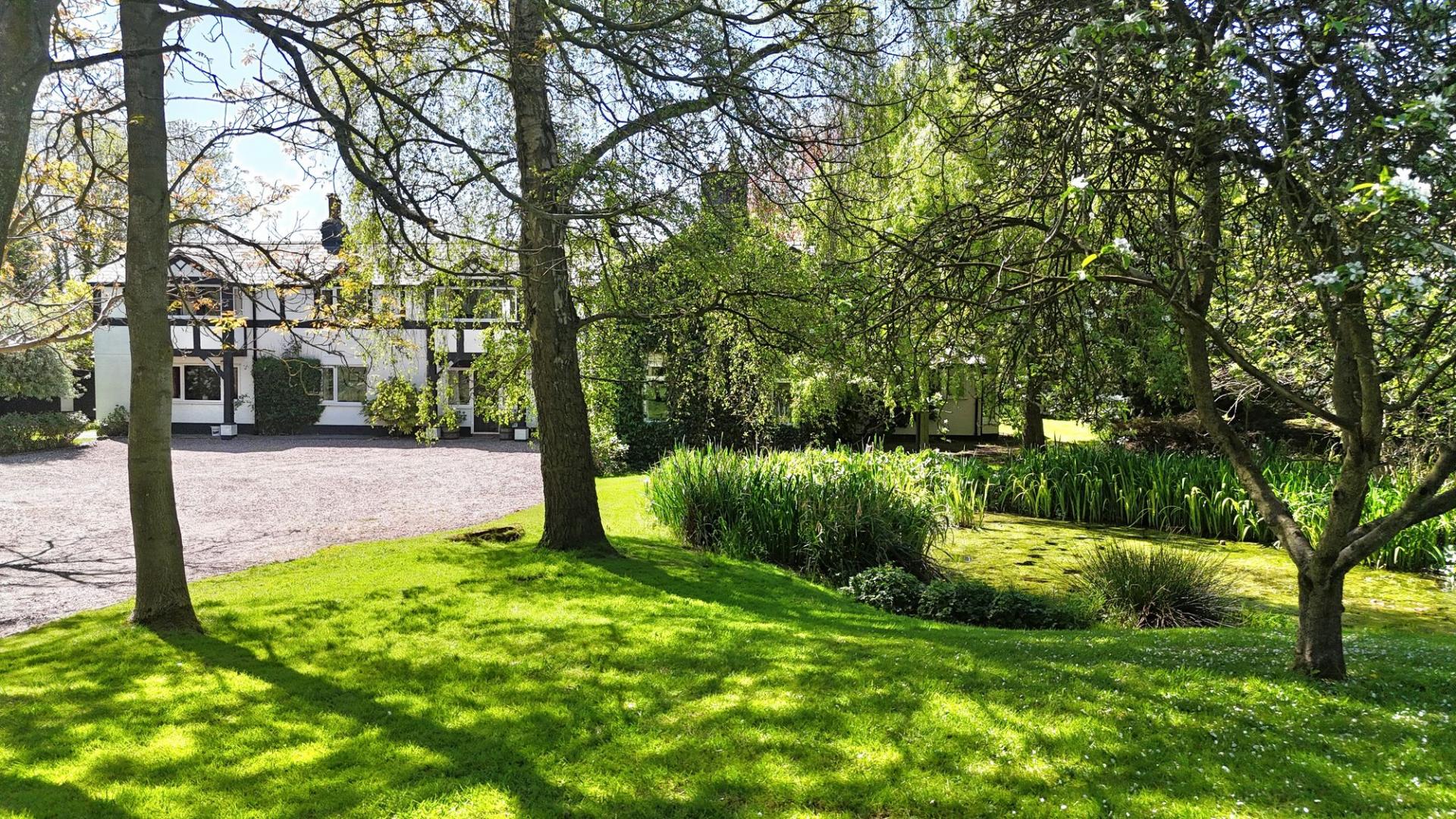 - South-west facing expansive gardens featuring lush lawns with richly stocked borders and the River Weaver flowing through the grounds, perfect for outdoor entertaining and garden endeavours