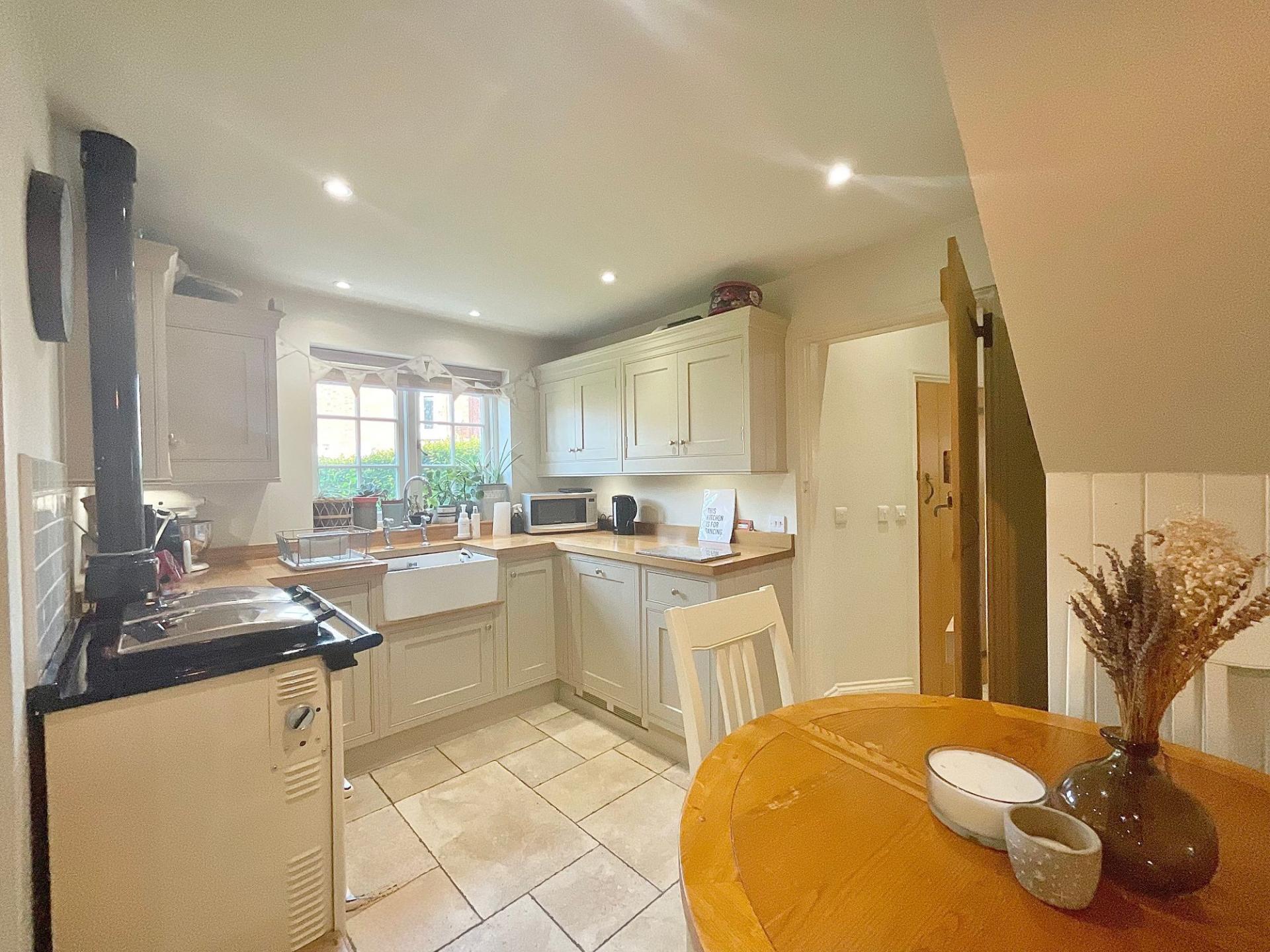 - Cosy living room – Dual-aspect windows with shutters create a bright, inviting space centred around a rustic fireplace that adds warmth and charm.