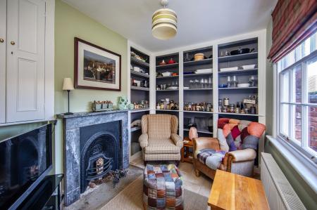 - Three elegant reception rooms featuring original fireplaces, engineered oak flooring, and plantation shutters