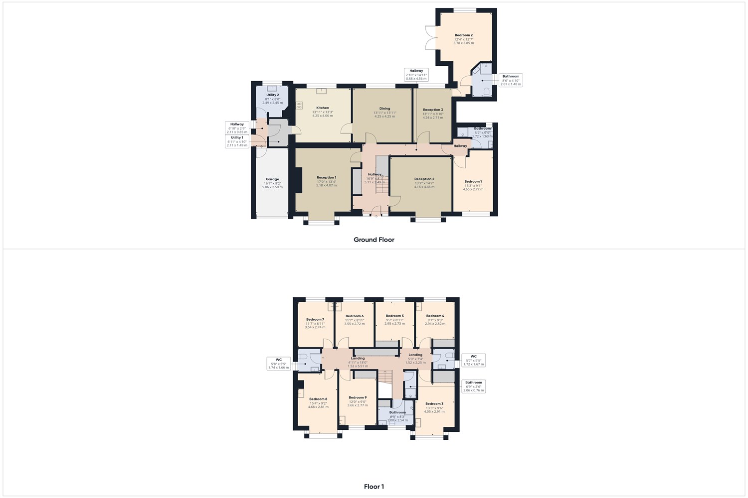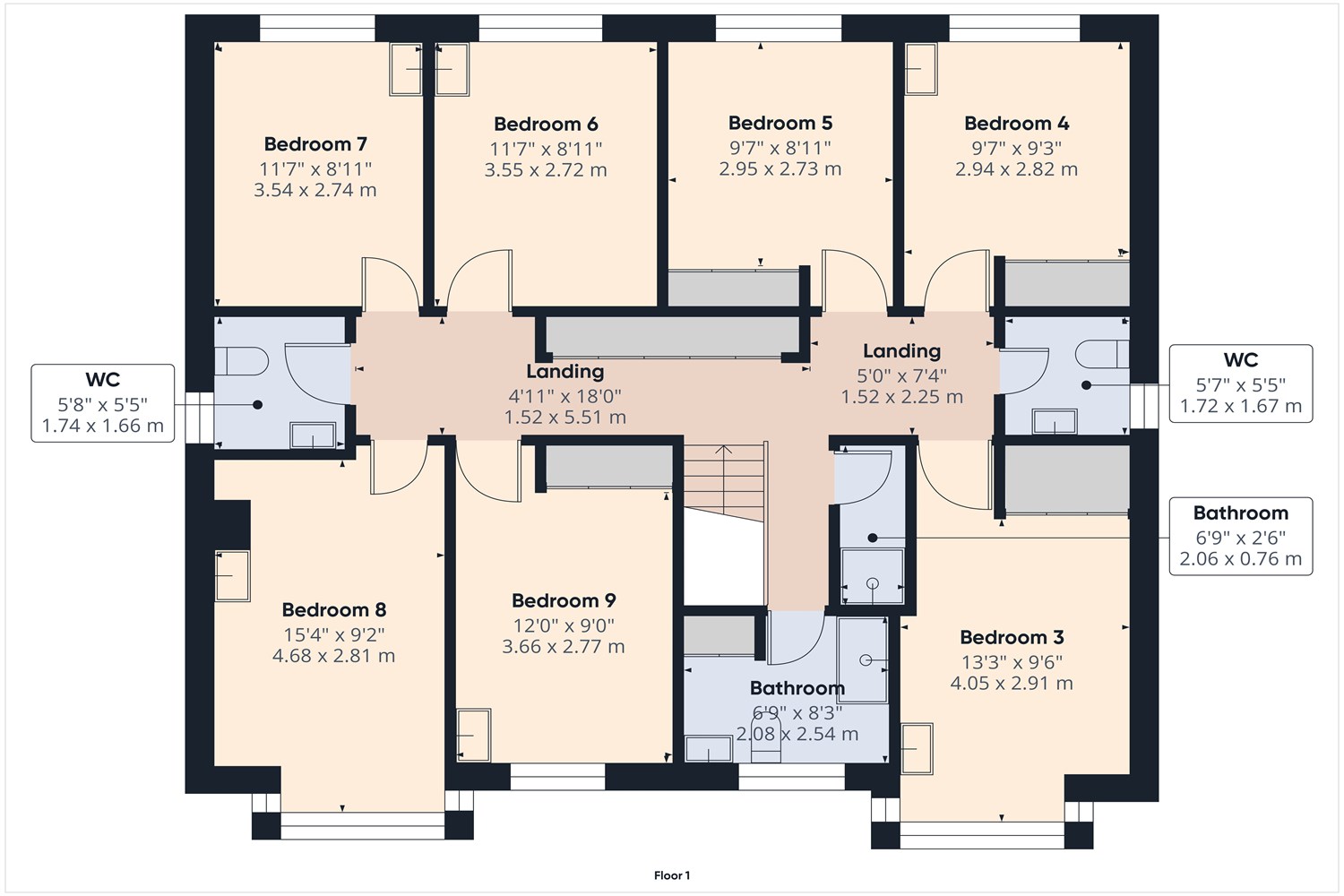 - 8 double bedrooms