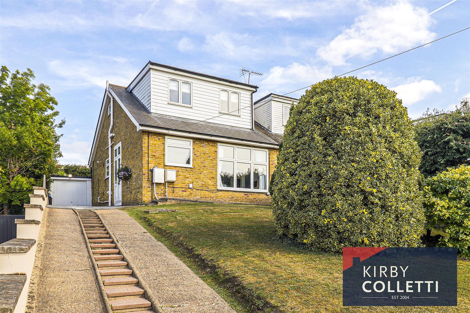 KIRBY COLLETTI are delighted to bring to market this superbly presented THREE BEDROOM SEMI DETACHED CHALET STYLE HOUSE. Situated on an elevated plot which enjoys fantastic far reaching views over the Lee Valley. The property is located within a short walk to local shops, Clayton Hill Park and just over 2 miles to Broxbourne Railway Station with it's excellent service into London.