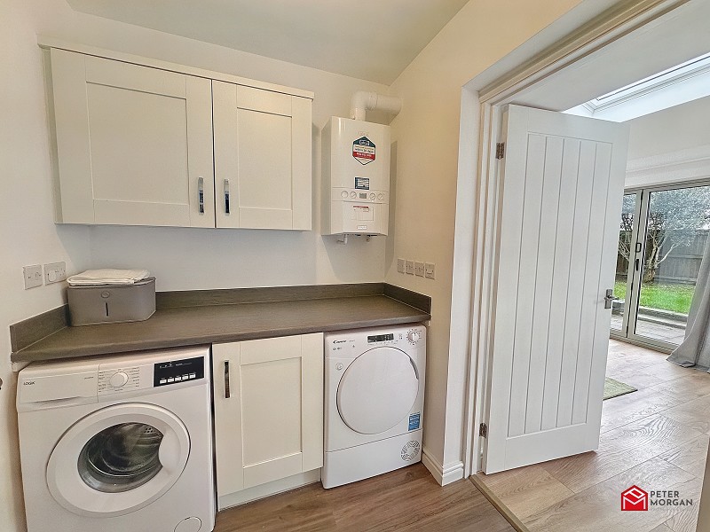 Appointed with shaker style wall and base units with work tops over. Plumbing in place for a washing machine, space for a tumble dryer, vinyl flooring and a wall mounted boiler serving domestic hot water and gas central heating.