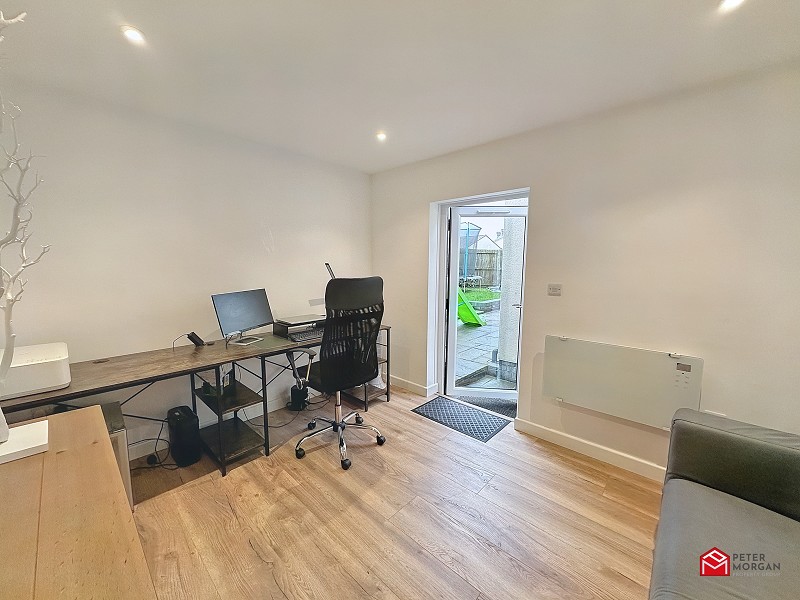 Office space - Wooden flooring, LED spotlights, electric heater and uPVC door to access the rear garden.