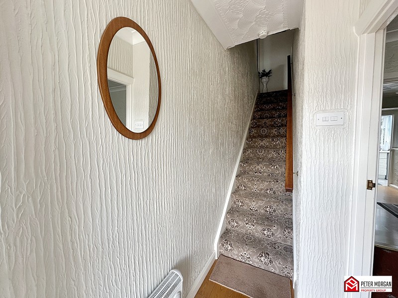 uPVC door to front. Laminate flooring. Elec radiator. Carpeted staircase to first floor.
