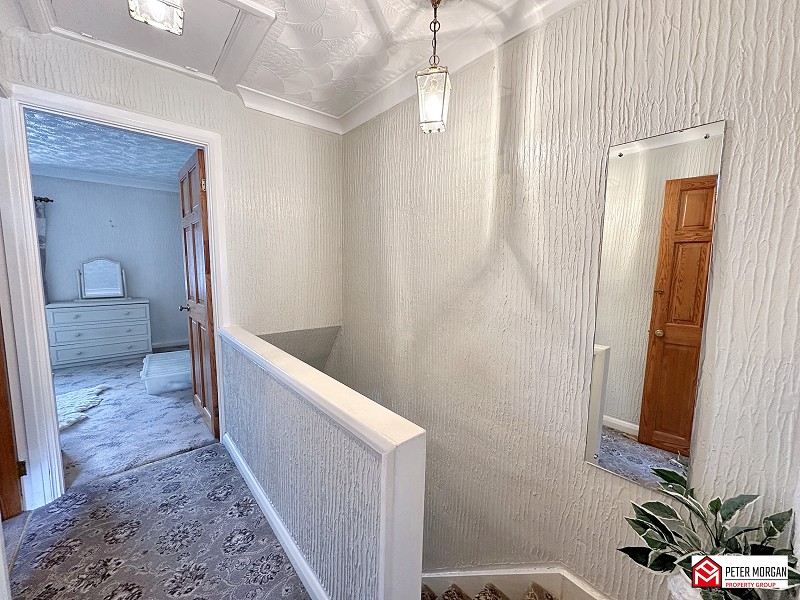 Carpeted staircase from ground floor. Loft access hatch. Carpet.
