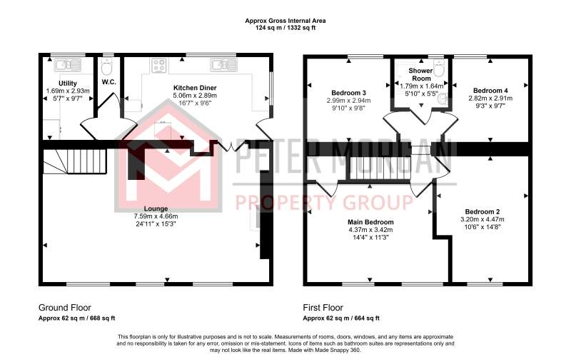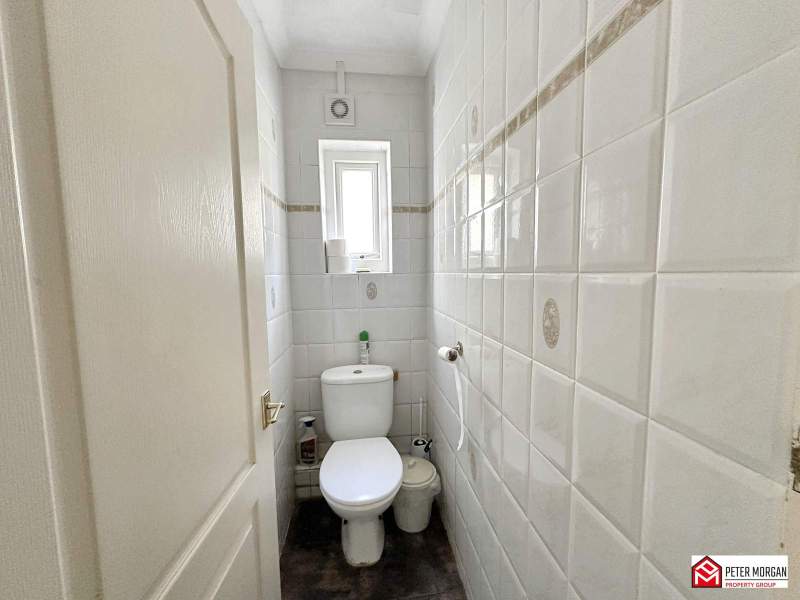uPVC frosted window to rear aspect, fully tiled walls and tiled flooring. low level W/C and extractor fan.