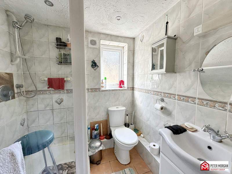 uPVC frosted window to rear aspect, fully tiled walls and tiled flooring. Shower cubicle, wash hand basin, W/C and extractor fan.