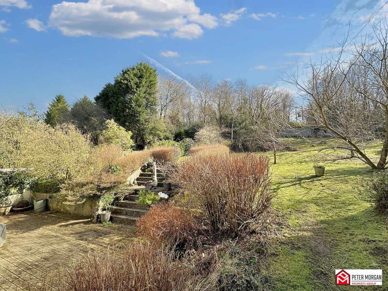 The exterior of the property showcases well-maintained gardens and green spaces, creating a tranquil environment. The garden is complemented by various mature trees and shrubs, enhancing the outdoor atmosphere while providing privacy. This substantial land area allows for potential landscaping or gardening projects.