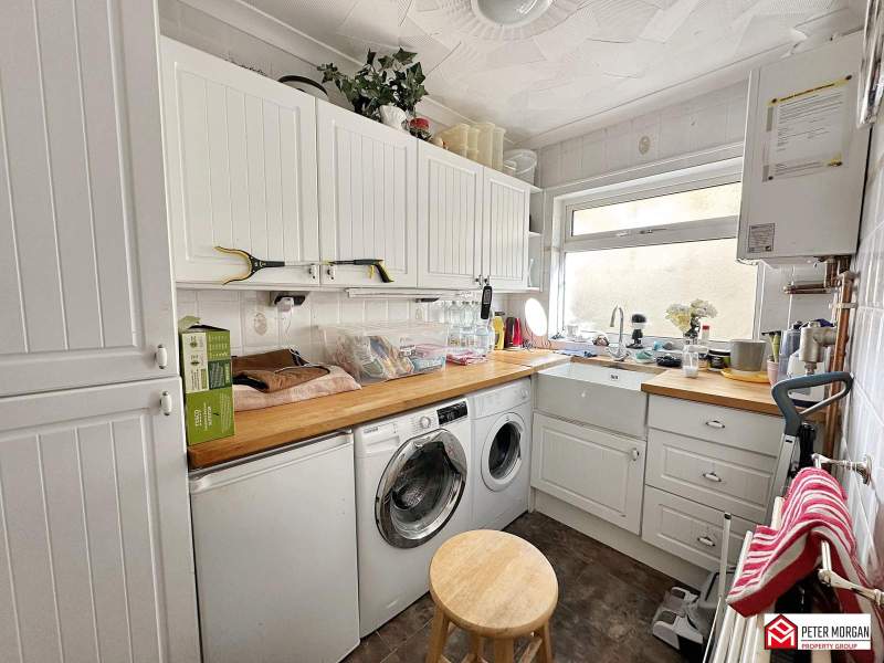 Fitted with cupboards and worktops. Plumbing for freestanding washing machine and a free standing tumble dryer. Boiler serving domestic hot water and gas central heating.