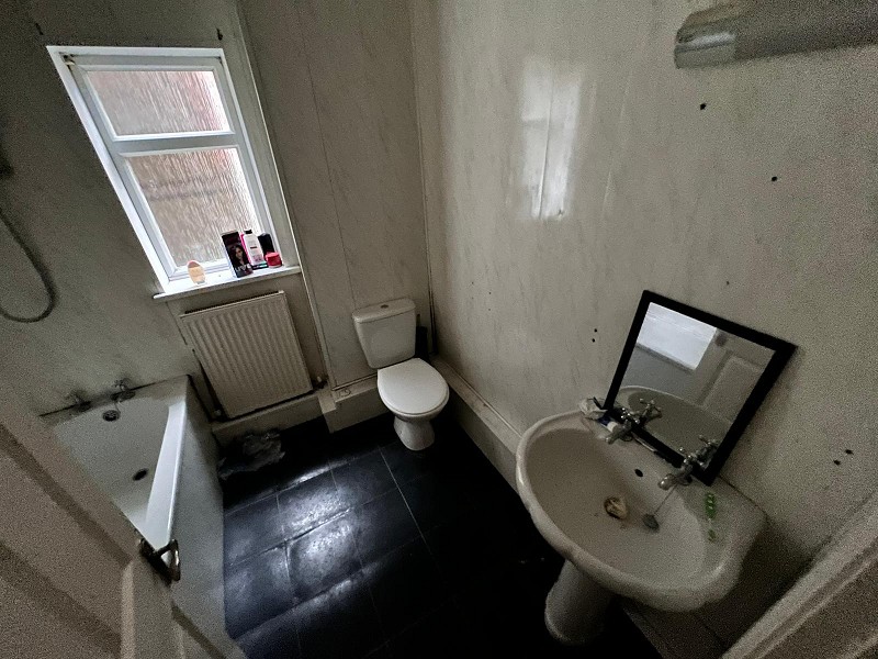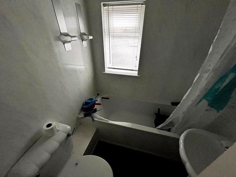Comprising of a white suite including a low level WC, wash hand basin and panelled bath with mixer tap. uPVC double glazed window, radiator and respotex walls.