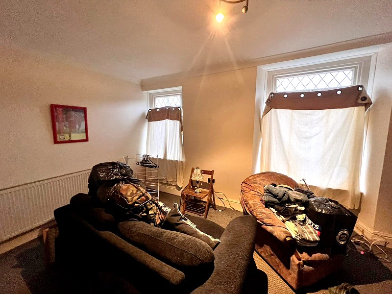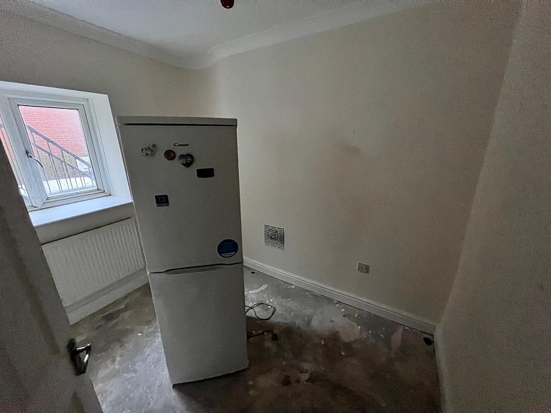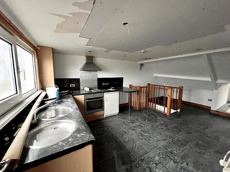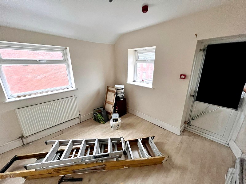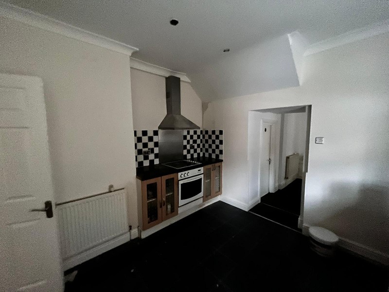 Third floor studio flat, open plan living and sleeping space, Appointed with a range of 'Beech' effect wall and base units with work tops over and a stainless steel sink with mixer tap. Electric oven with hob, radiator, plumbing in place for a washing machine, laminate flooring and uPVC door to access the rear of the property which will be the main entrance to the flat.