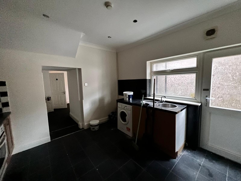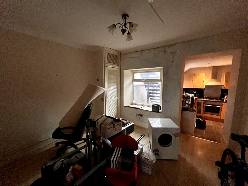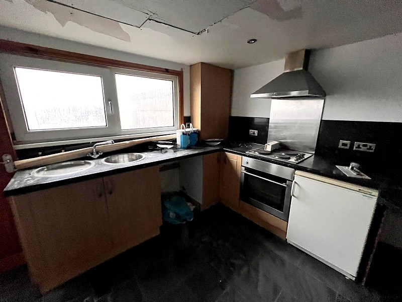 Appointed with a range of 'Beech' effect wall and base units with work tops over and a stainless steel sink with mixer tap. Electric oven with hob, radiator, plumbing in place for a washing machine, laminate flooring and uPVC door to access the rear of the property which will be the main entrance to the flat.