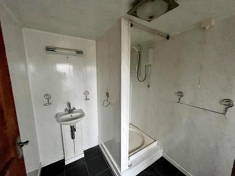 Comprising of a low level WC, pedestal wash hand basin and an electric shower cubicle.