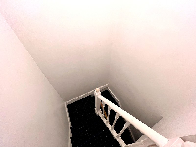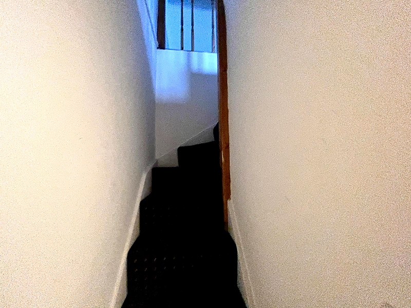 Carpeted flooring, stairs to flat two.