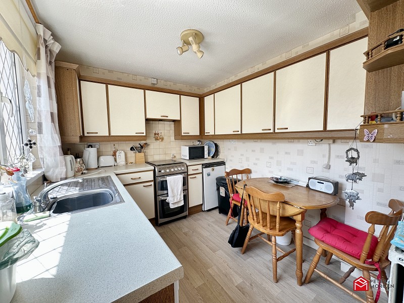 Appointed with a range of matching wall and base units with work tops over and an inset sink with mixer tap. uPVC window to the rear aspect, plumbing in place for washing machine, space for freestanding fridge freezer and gas cooker.