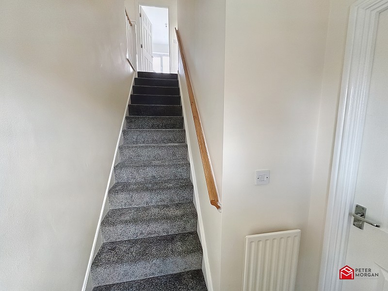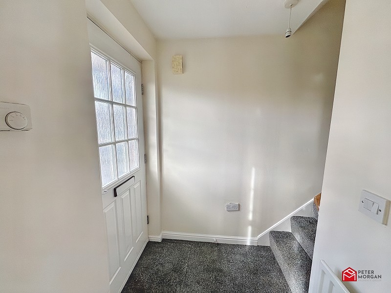 Enter through a uPVC door, carpeted flooring, radiator and stairs to the first floor.
