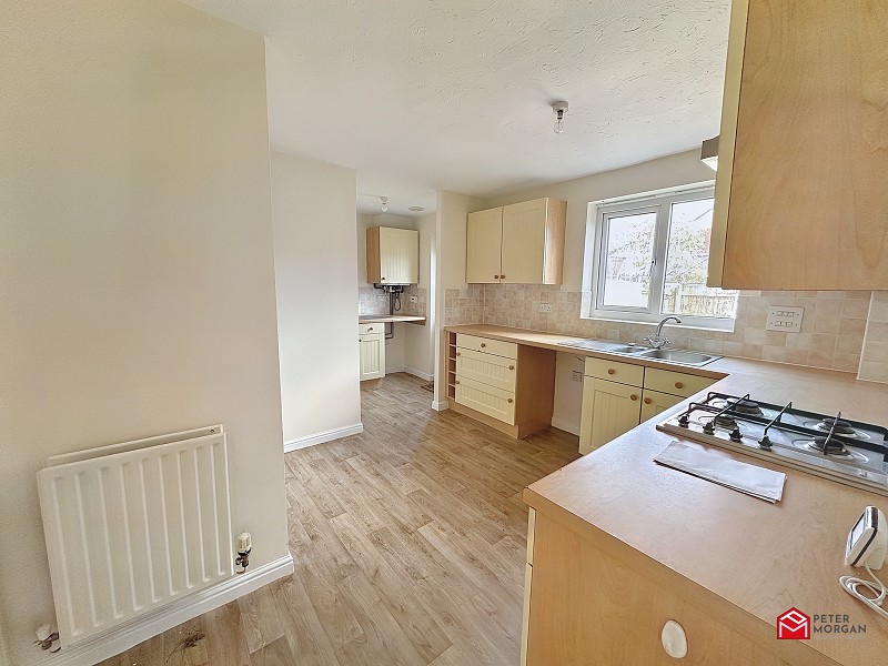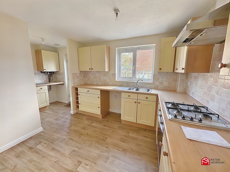 Appointed with a range of matching wall and base units with work tops over and an inset stainless steel sink with mixer tap. uPVC double glazed window to the rear aspect, integrated oven and gas hob with fan over, laminate flooring, radiator, plumbing in place for a washing machine and dishwasher, space for a fridge freezer and storage cupboard.