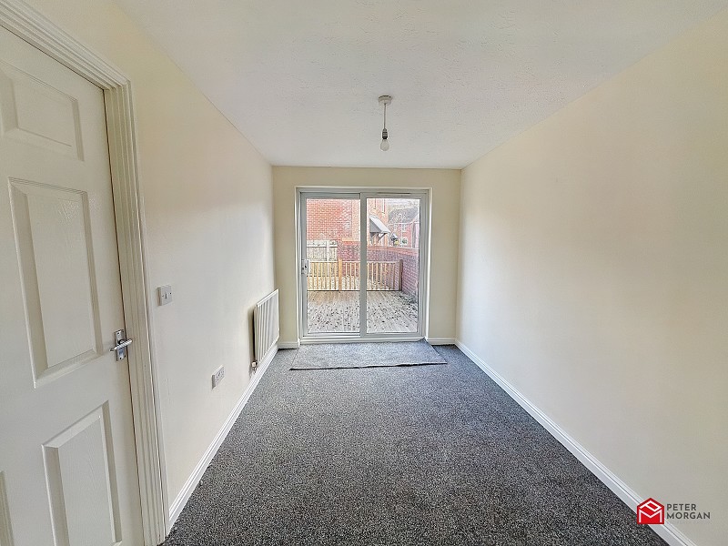 Carpeted flooring, radiator and uPVC patio doors to access the rear garden.