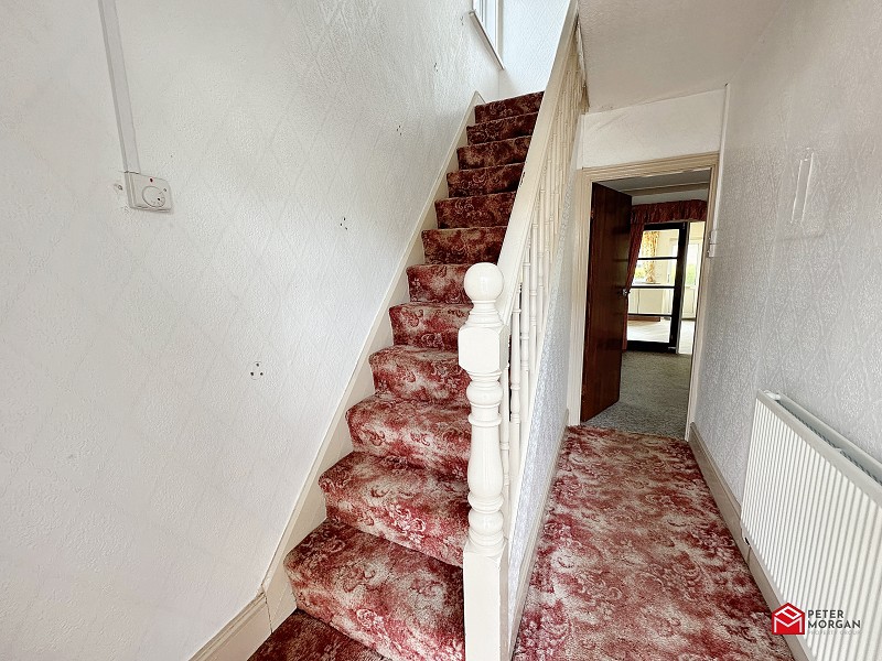 Enter through a uPVC front door, radiator, carpeted floor and stairs to the first floor.