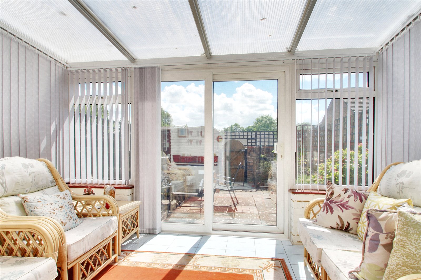 Set on the outskirts of the development this large three bedroom end of terrace house boasts newly replaced double glazed windows. There is spacious hallway with wood effect flooring, the lounge opens onto double glazed conservatory and maintenance free gardens. There is separate kitchen/dining room. To the first floor are 3 bedrooms and family bathroom with ample storage throughout the house.