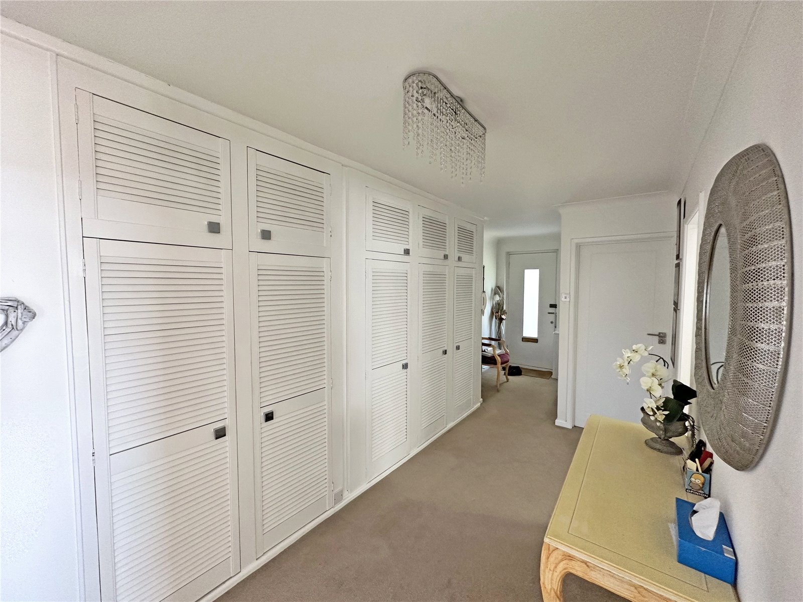 Superb range of built in storage cupboards incorporating airing cupboard with hot water cylinder and shelving, two electric storage heaters.