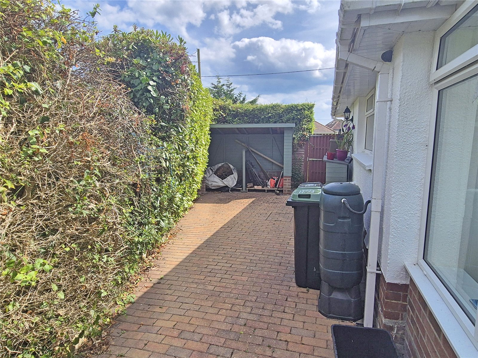 The property is set in an excellent sized corner plot with block pavior driveway providing off road parking and paved pathway leading from pedestrian gate to the front door and both sides of the property. The front garden has been attractively landscaped with two areas of level lawn with attractive shrubs and hedging. The driveway leads to: