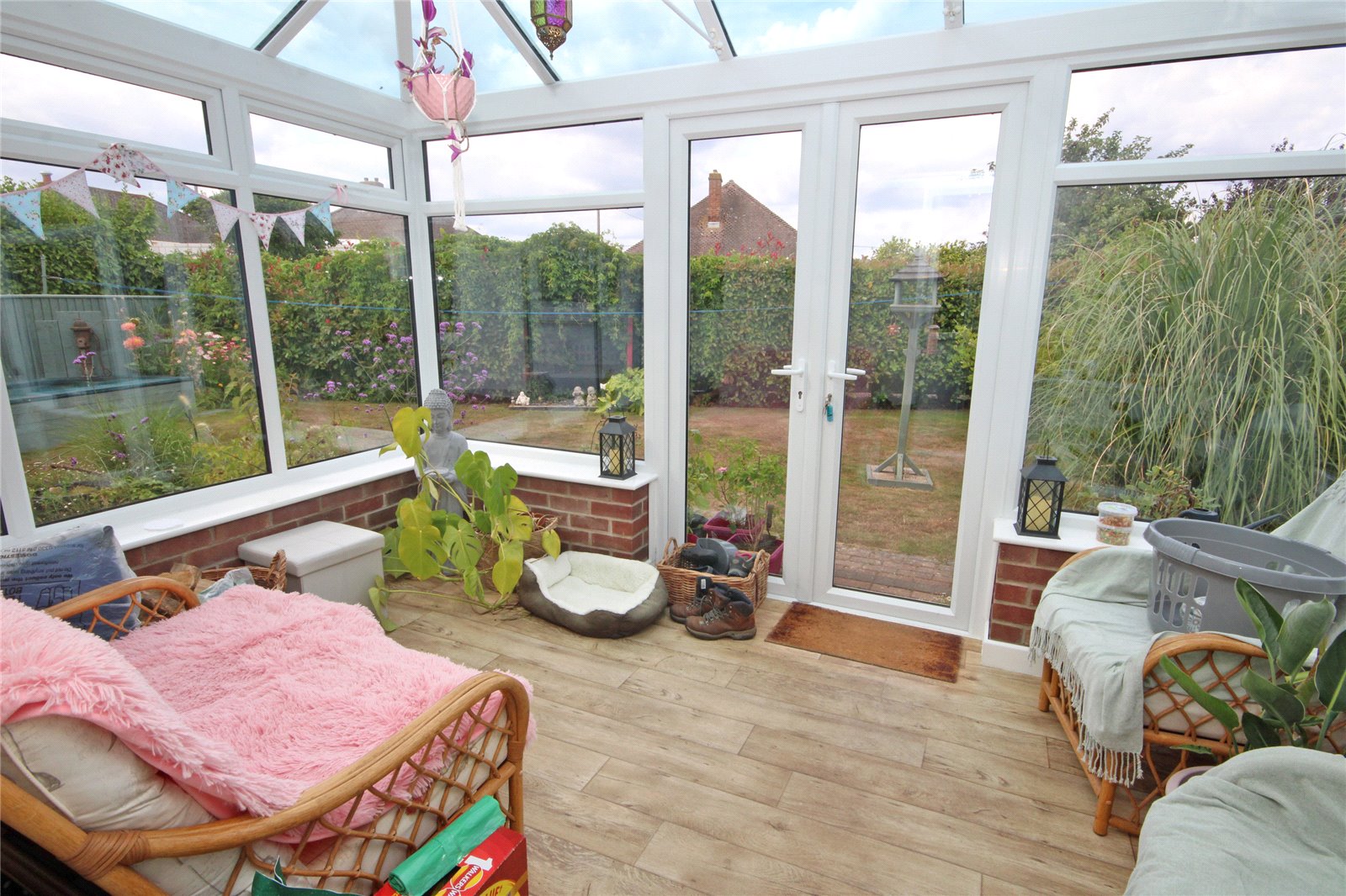 Brick base, pitched glass roof, double glazed windows and double opening casement doors to rear garden.