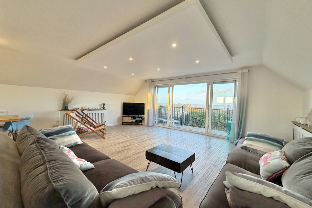 - Open plan living space with panoramic sea views over dunes