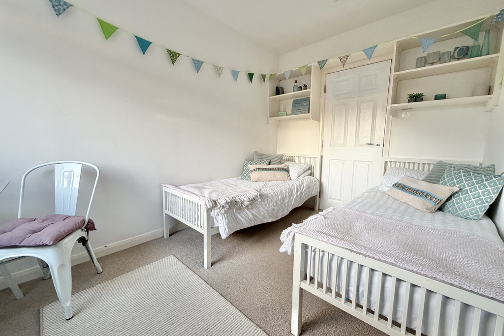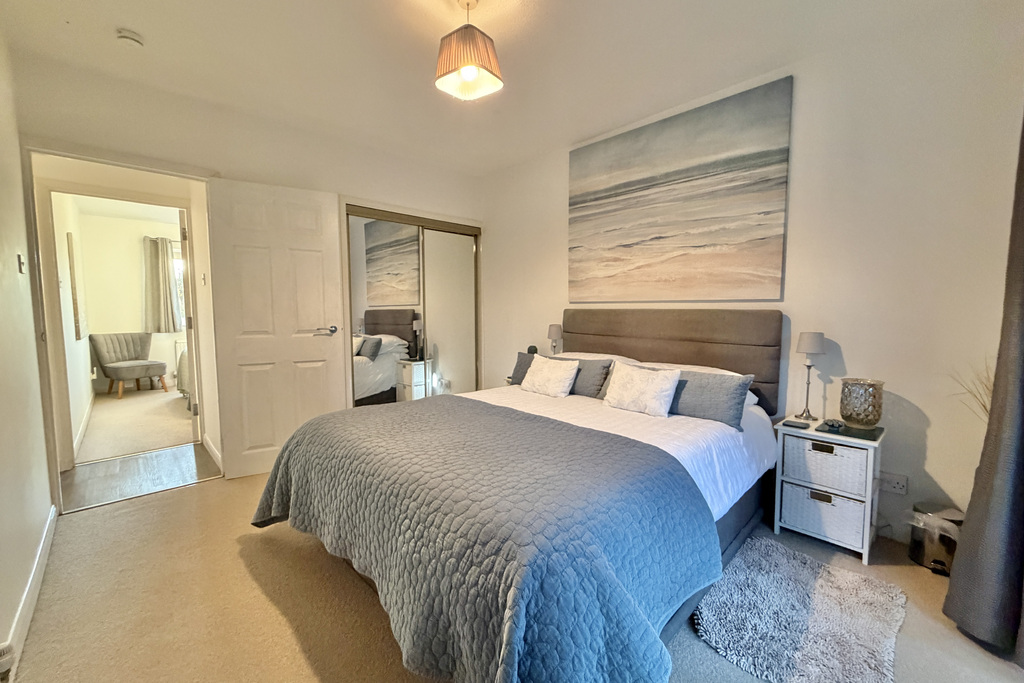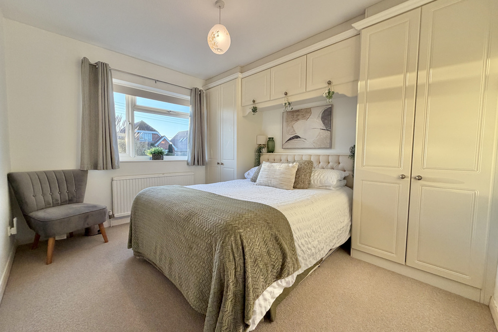 with uPVC double glazed window overlooking front, radiator, built in wardrobes with shelving and hanging rails, storage cupboard