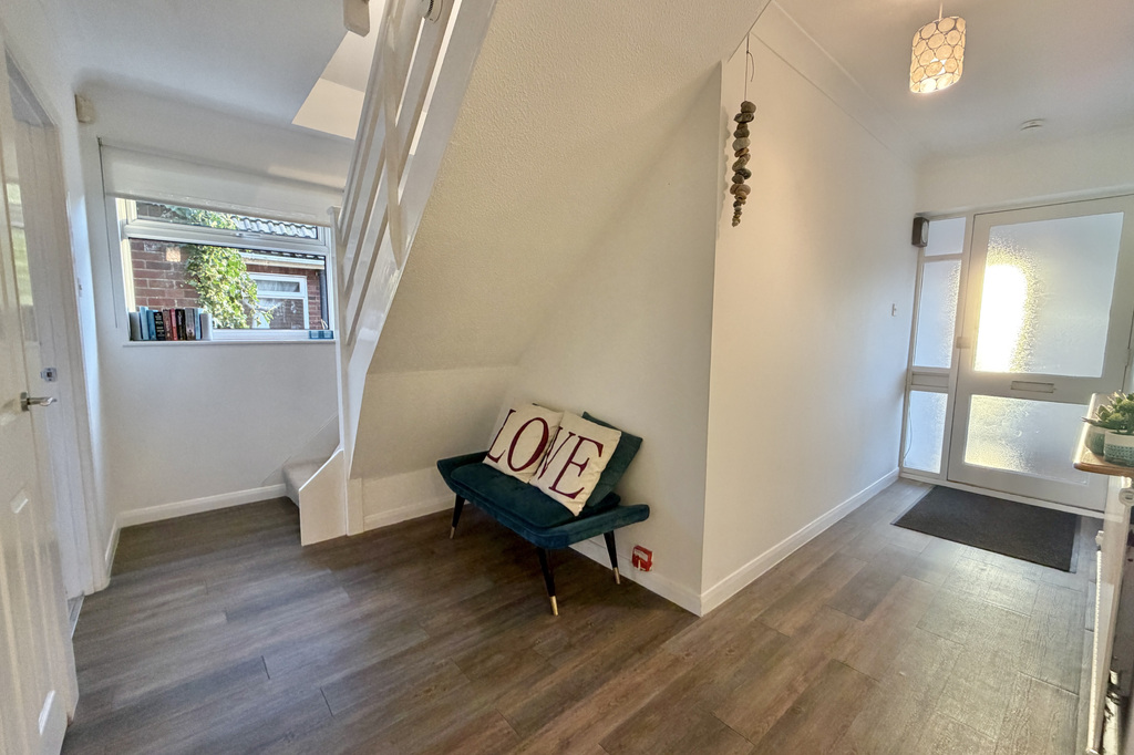 with tiled flooring, uPVC double glazed front door with frosted double glazed window to side, uPVC double glazed windows to side
