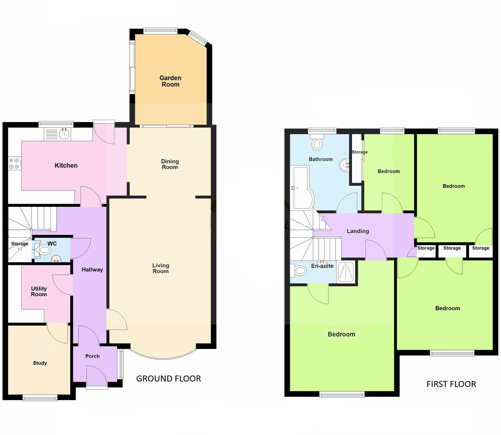 A beautifully presented spacious four bedroom detached home which enjoys beautiful countryside views. The property comprises of an entrance porch, hallway, living room, dining room, garden room, kitchen, utility room, study & WC to the ground floor. To the first floor the property enjoys a main bedroom with en-suite, modern fitted bathroom, three further bedrooms all with built in wardrobes & a landing. The property has a low maintenance rear garden & driveway to the front with parking for multiple cars. A viewing is highly recommended.