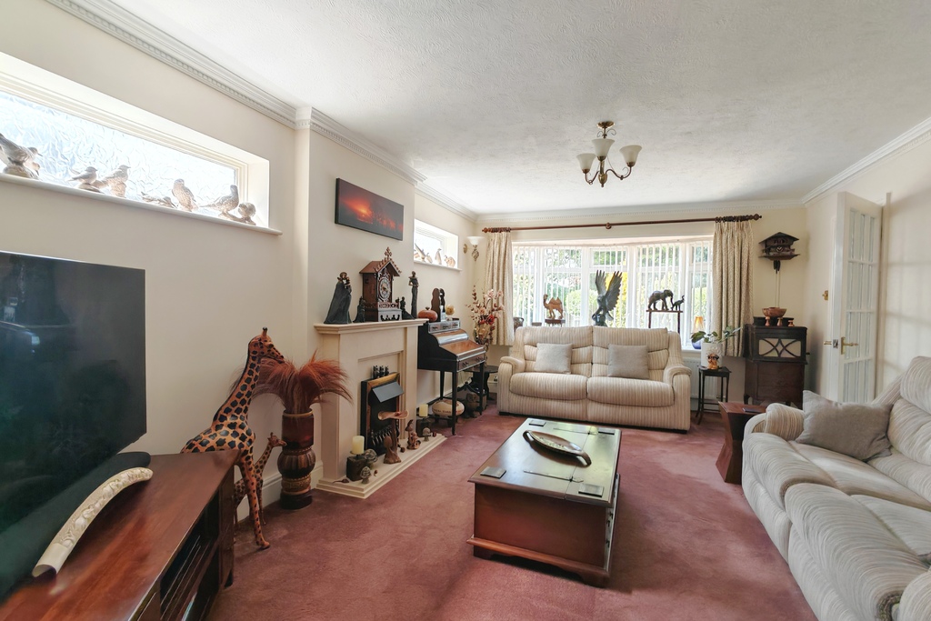 with uPVC double glazed bay window overlooking front, gas fireplace with stone surround and hearth, radiator, high level uPVC double glazed frosted window, archway opening into