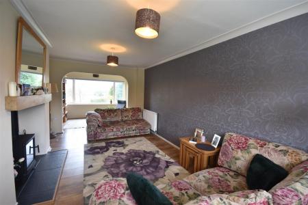Newly installed log burner in fireplace with oak beam over and slate tiled hearth, wood effect laminate floor covering, uPVC double glazed window to front elevation, two radiators. Part dividing archway leading to the rear part of the room where there is built in pine book shelving along one wall, uPVC double glazed window to the rear elevation with elevated views of the garden and countryside beyond.