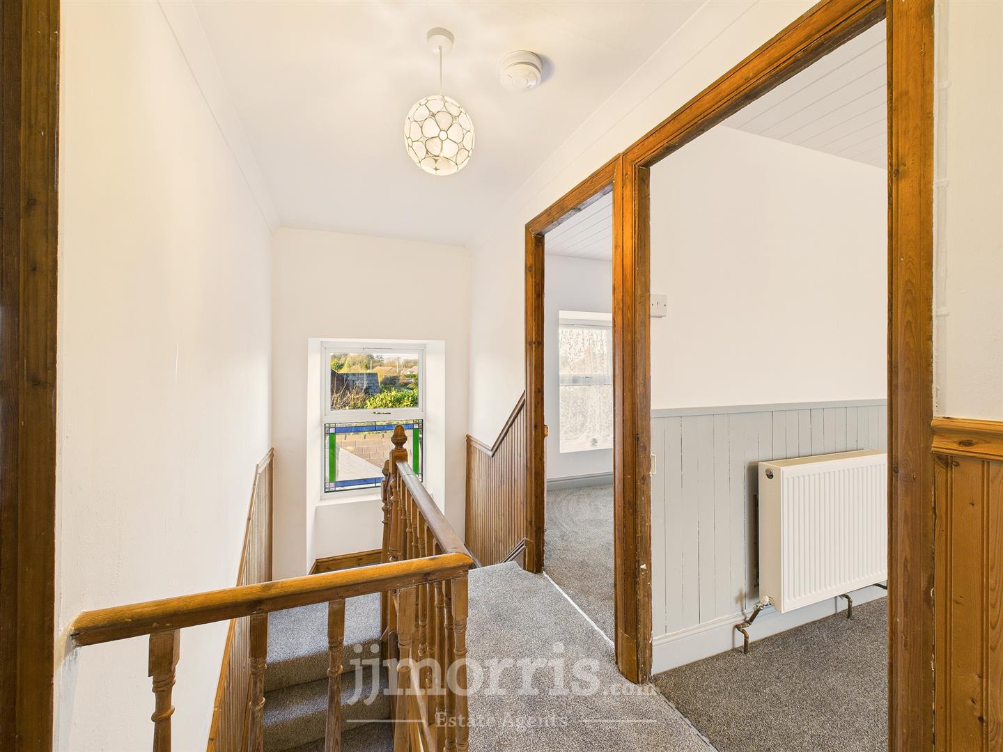 Landing - Double glazed Upvc window, loft access, part wooden panel walls, doors to:-