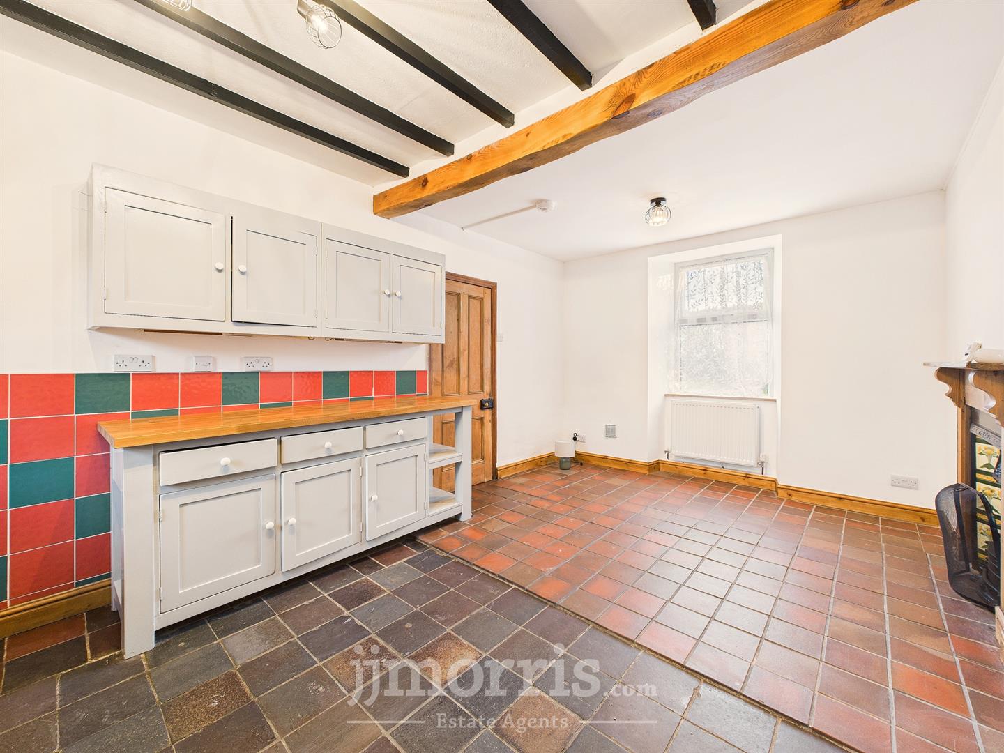 Kitchen/Dining Room - Having a range of wall and base hand made bespoke units with complimentary worktop surfaces, 1.5 inset ceramic sink, plumbing for washing machine, double range cooker, exposed beans, part tiled walls, tiled flooring, double glazed Upvc windows, feature fire place, radiator, doors to:-