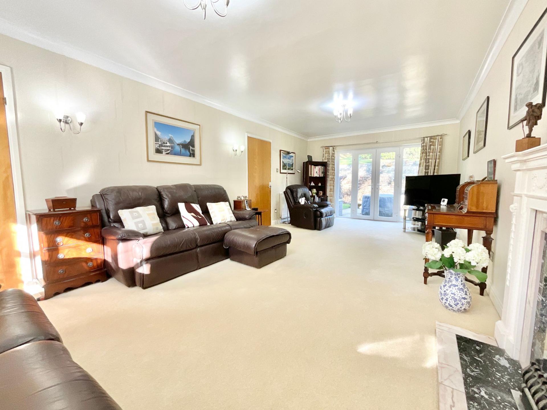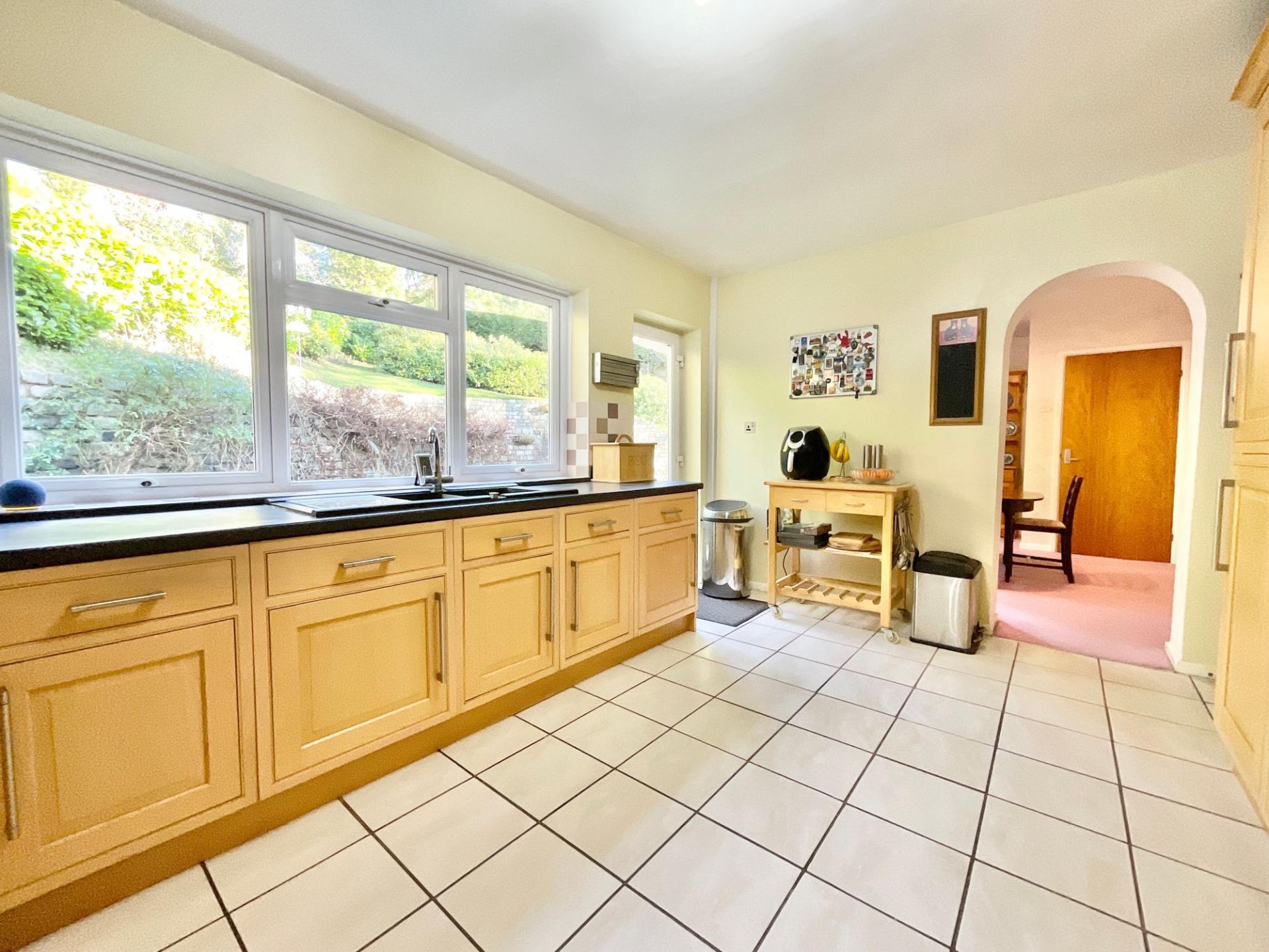 - The kitchen includes built-in appliances, abundant storage, and easy access to both the garden and a double garage that includes an electric vehicle charging point.