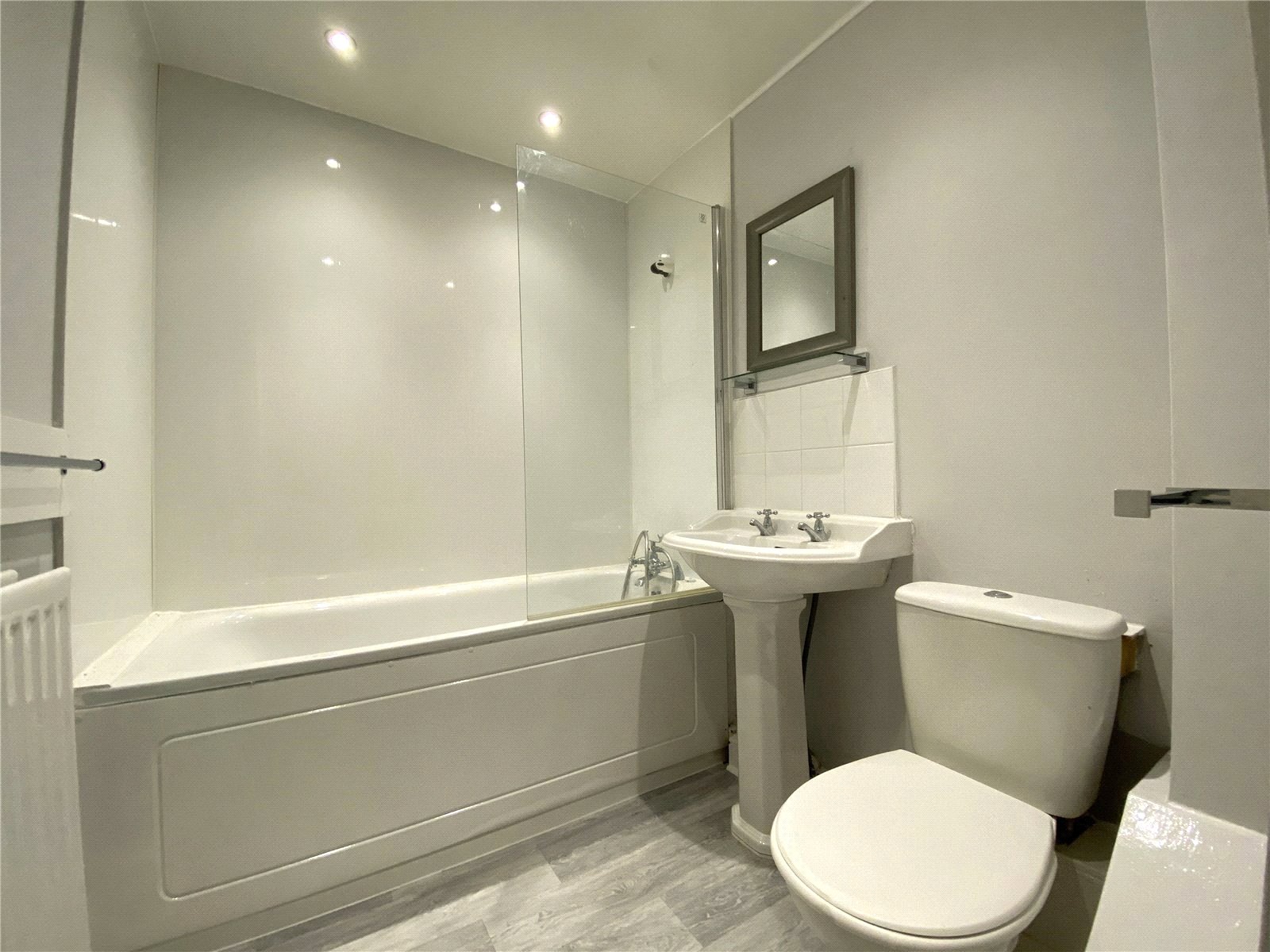 The bathroom is fitted with a modern suite, comprising low level WC, wash hand basin set upon pedestal, panel eclosed bath with mains fed shower over. The walls were tiled to splashback and there are spot lights to the ceiling.