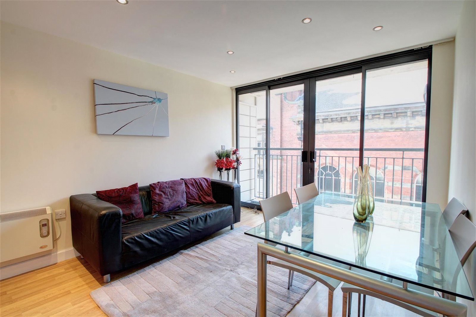 Double glazed windows and doors to Juliet balcony, two wall mounted electric heaters, telephone entry system, television aerial and telephone points.